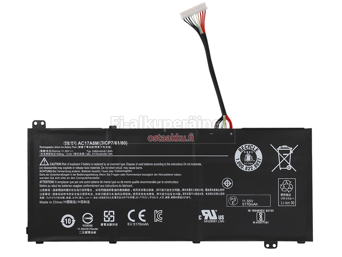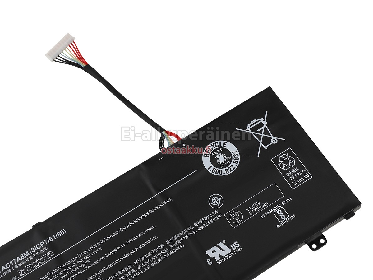 Vaihdettava akku Acer Aspire 5 A515-53G-5269 on uusi. Ehdottomasti ei myydä käytettyjä akku tai uudistettu. Akut ovat valmistettu parhaista solujen ja komponentteja.