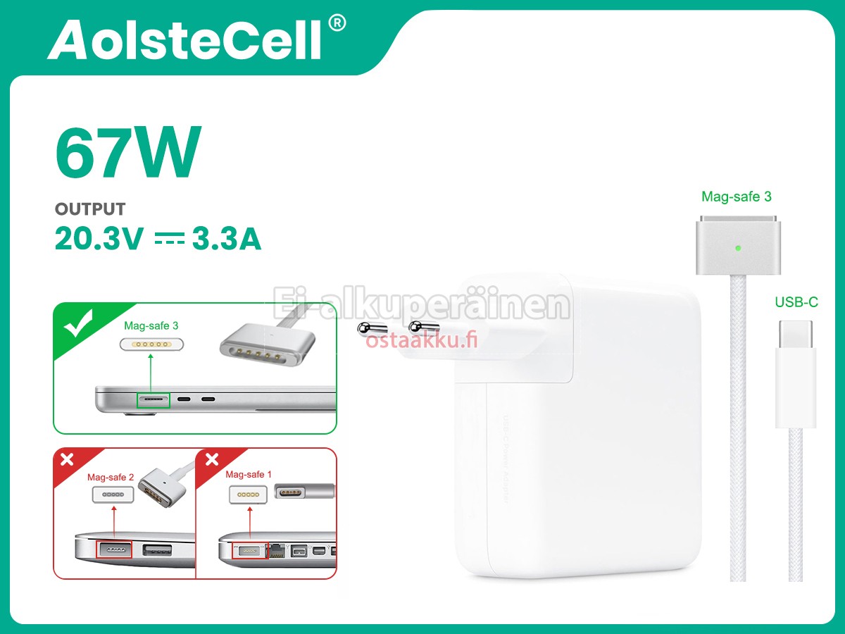 Oletko kyllästynyt etsimään jatkuvasti luotettavaa Apple 67W 20.3V 3.3A USBC to MagSafe 3 -sovitinta? Tehokas Apple 67W 20.3V 3.3A USBC to MagSafe 3 -sovittimemme on suunniteltu pitämään laitteesi päällä ja käyttövalmiina missä ikinä oletkin.