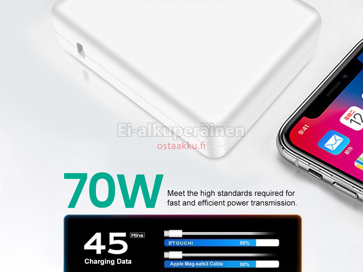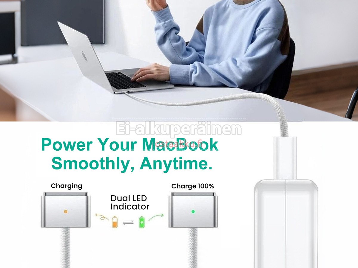 2. Pikalataus: Edistyneellä lataustekniikalla varustettu Apple 70W 20.6V-3.4A USBC to MagSafe 3 -sovittimemme tarjoaa nopean ja tehokkaan virran laitteellesi, mikä varmistaa, että pysyt tuottavana ilman pitkiä latausaikoja.