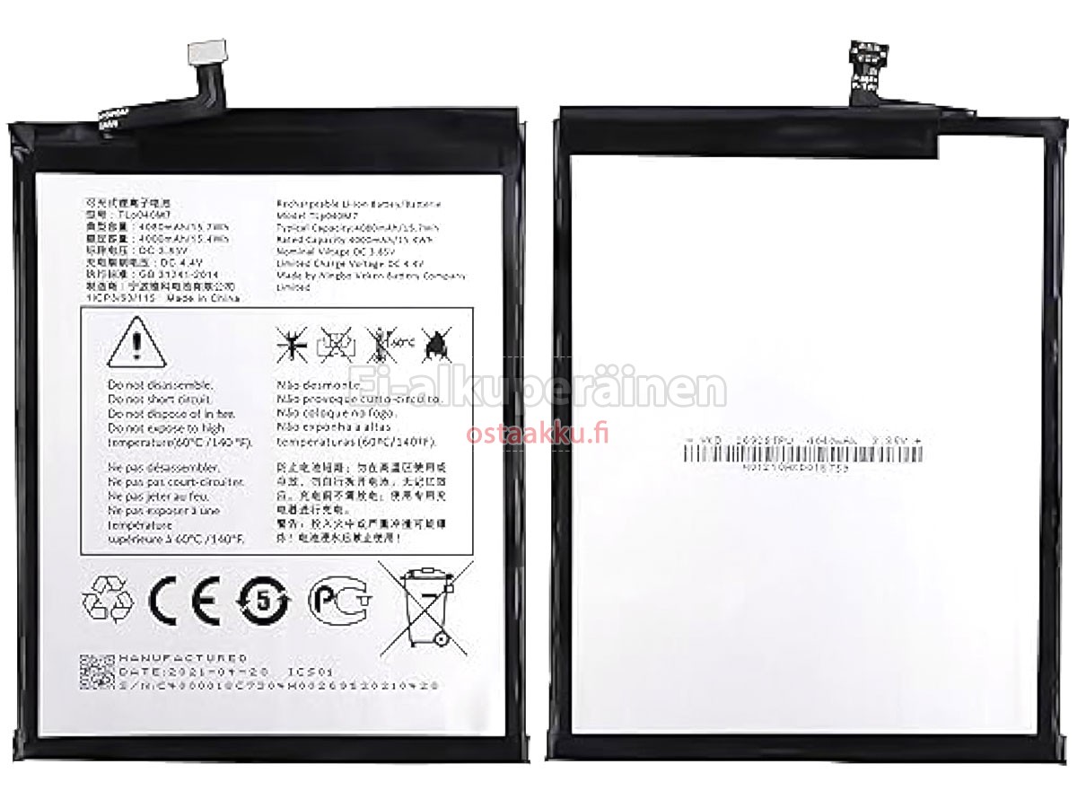 Vaihdettava akku Alcatel TLP040M7 on uusi. Ehdottomasti ei myydä käytettyjä akku tai uudistettu. Akut ovat valmistettu parhaista solujen ja komponentteja.