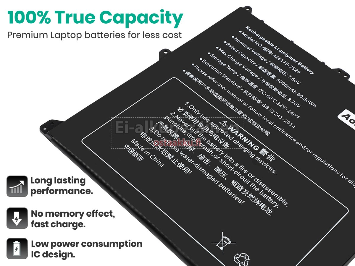 Ei muita eroja, paitsi ilman akku tuotemerkkiä. Kaikki akkuja ovat saatavilla in ostaakku.fi valmiustilassa paristot alkuperäisiä valmistajia. Hyväksyy ytimet ja älykäs soluja, kuten alkuperäisiä valmistajia, joten suorituskyky ja yhteensopivuus Alldocube GTBOOK 13 PRO akku on samanlainen kuin alkuperäisen akku ja paremmin. Tämä vähentää palkkion brändistä, varmistaa laadun. Monet asiakkaat ajattelevat, että alkuperäinen akku on parempi suorituskyky. Itse asiassa, kannettavani akkuja tuotemerkkejä ovat myös monet kolmannen osapuolen komponentteja (kuten Samsung, LG, jne). Kuten Kannettavani keskusyksikkö, brändin oma tietokoneyritys ei ole sitä kehittänyt.
