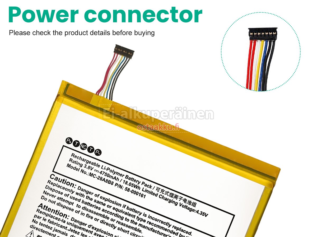 Varaenergian akku uusi Amazon 26S1018 valmistetaan hienoimmista solujen ja komponentteja. Amazon 26S1018 akku säädetään in abc.com hyväksytyn UN38.3, RCM, CE, UL, ROHS, ISO9001/ISO9002 ja muiden kansainvälisten sertifiointia. Jotta voidaan minimoida mahdollinen turvallisuusriski ja varmistaa hyvän käyttäjäkokemuksen, tarjotaan erilaisia suojatoimia Amazon 26S1018 Kannettavani akku kuten lämpösuojaus, virtapiirin suojaus, ylijännitesuojaus, laitteiston suojaus ja kynnyksen lähtövirran.