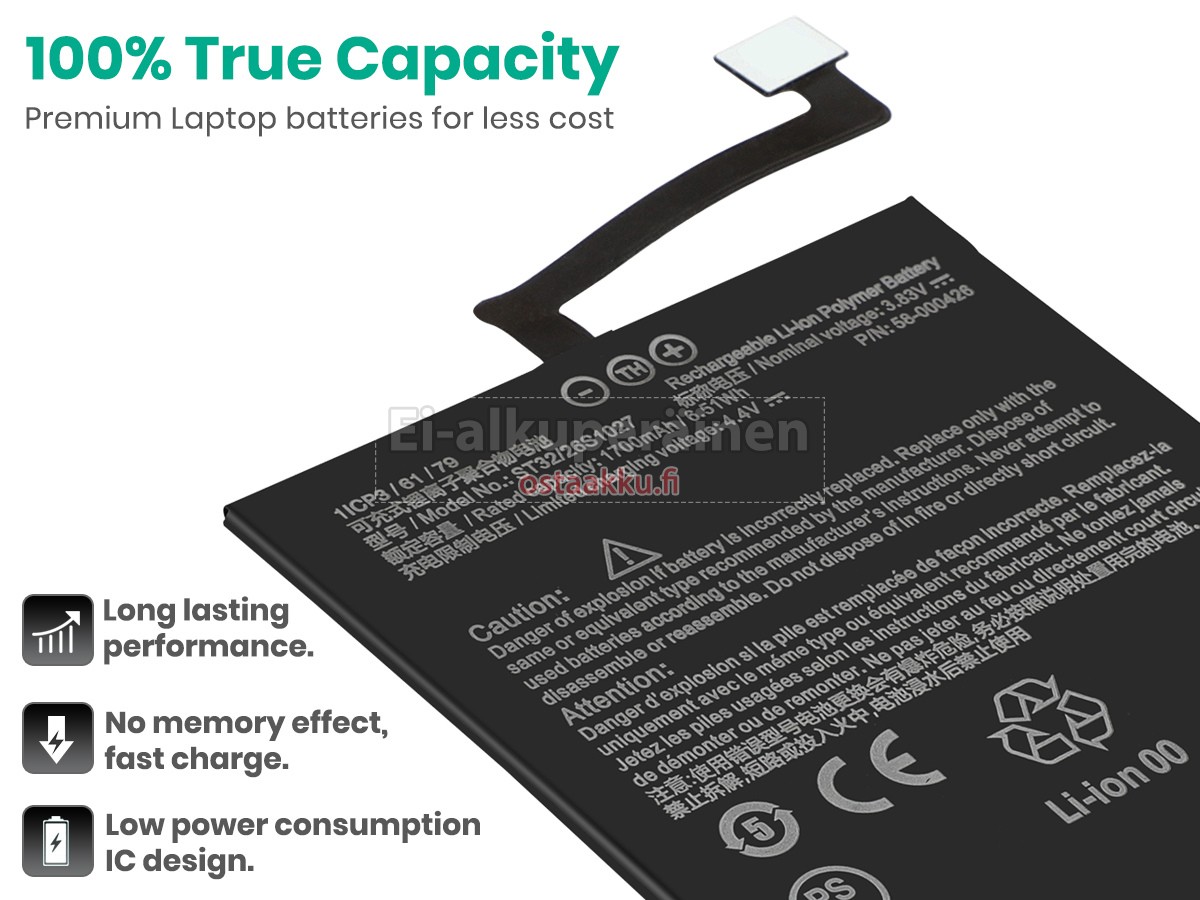 Ei muita eroja, paitsi ilman akku tuotemerkkiä. Kaikki akkuja ovat saatavilla in ostaakku.fi valmiustilassa paristot alkuperäisiä valmistajia. Hyväksyy ytimet ja älykäs soluja, kuten alkuperäisiä valmistajia, joten suorituskyky ja yhteensopivuus Amazon 58-000426 akku on samanlainen kuin alkuperäisen akku ja paremmin. Tämä vähentää palkkion brändistä, varmistaa laadun. Monet asiakkaat ajattelevat, että alkuperäinen akku on parempi suorituskyky. Itse asiassa, kannettavani akkuja tuotemerkkejä ovat myös monet kolmannen osapuolen komponentteja (kuten Samsung, LG, jne). Kuten Kannettavani keskusyksikkö, brändin oma tietokoneyritys ei ole sitä kehittänyt.
