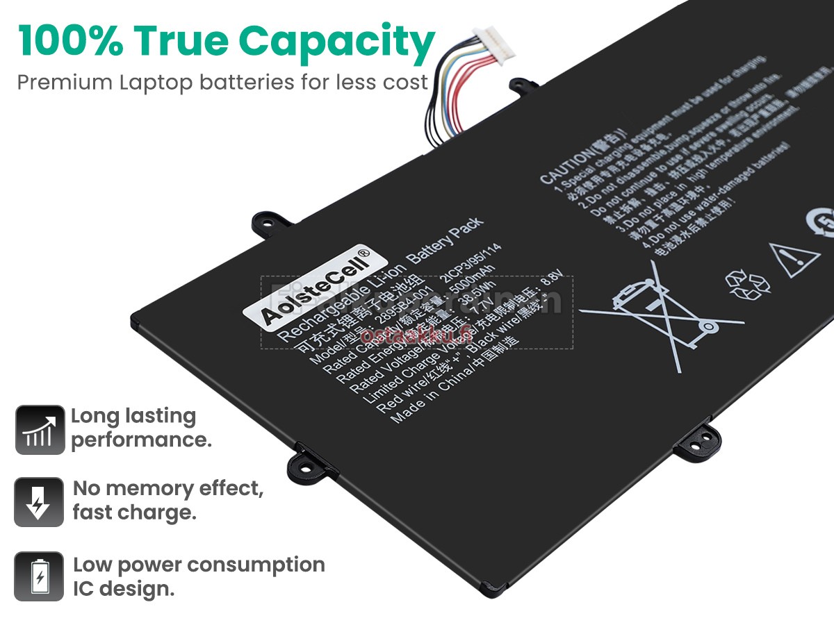 Varaenergian akku uusi AolsteCell 2895B4-001 valmistetaan hienoimmista solujen ja komponentteja. AolsteCell 2895B4-001 akku säädetään in abc.com hyväksytyn UN38.3, RCM, CE, UL, ROHS, ISO9001/ISO9002 ja muiden kansainvälisten sertifiointia. Jotta voidaan minimoida mahdollinen turvallisuusriski ja varmistaa hyvän käyttäjäkokemuksen, tarjotaan erilaisia suojatoimia AolsteCell 2895B4-001 Kannettavani akku kuten lämpösuojaus, virtapiirin suojaus, ylijännitesuojaus, laitteiston suojaus ja kynnyksen lähtövirran.
