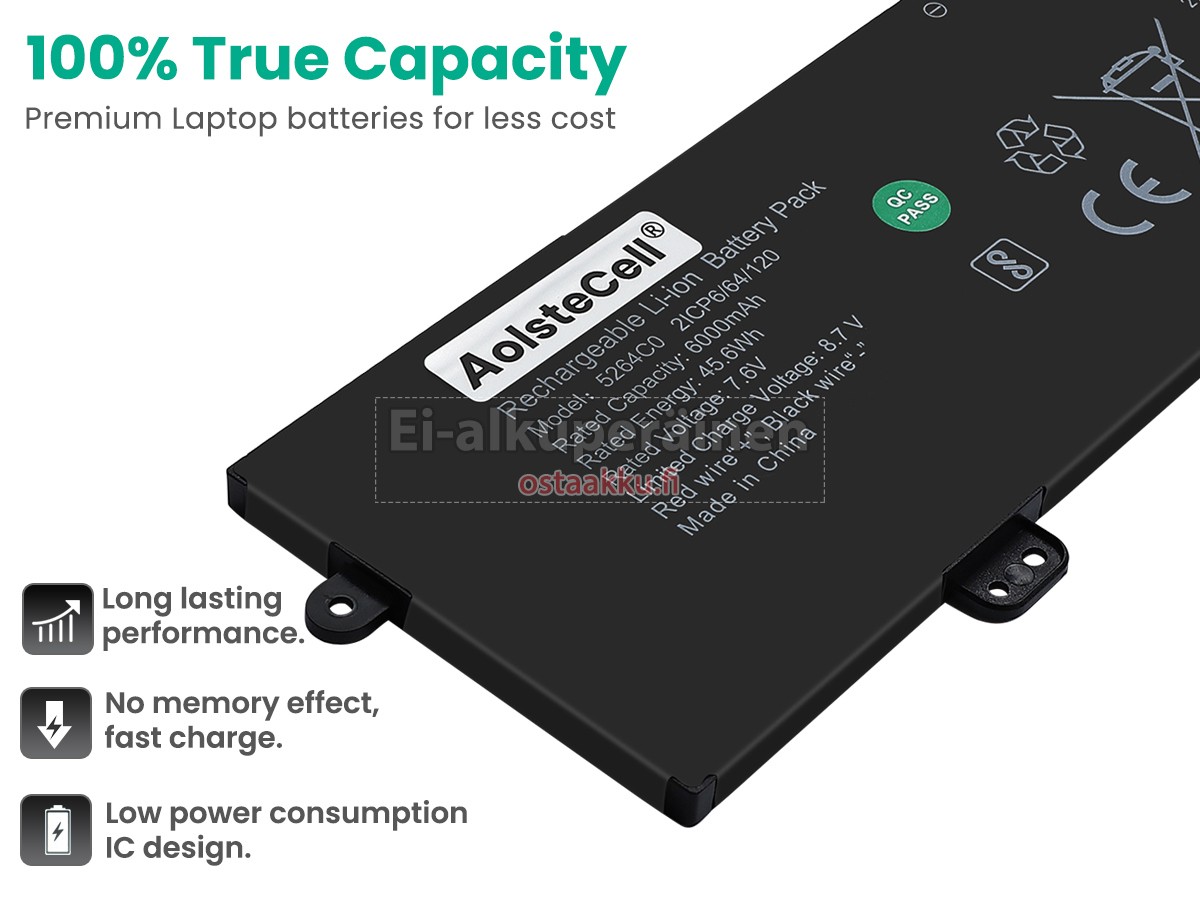 Vaihdettava akku AolsteCell 5264C0 on uusi. Ehdottomasti ei myydä käytettyjä akku tai uudistettu. Akut ovat valmistettu parhaista solujen ja komponentteja.