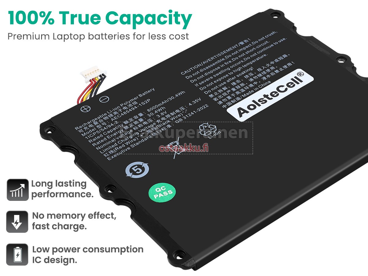 Vaihdettava akku AolsteCell AEC485494-1S2P on uusi. Ehdottomasti ei myydä käytettyjä akku tai uudistettu. Akut ovat valmistettu parhaista solujen ja komponentteja.
