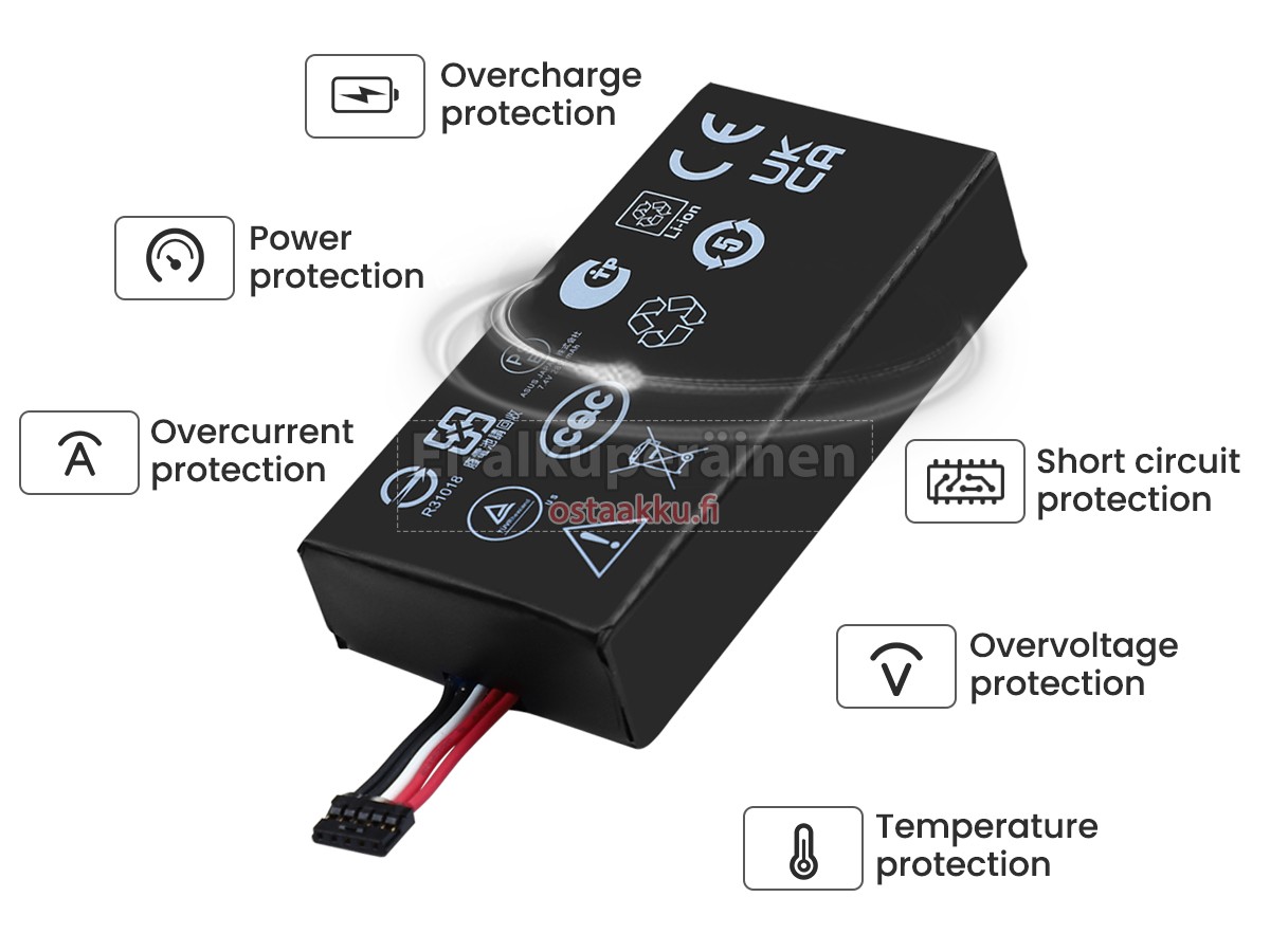 Varaenergian akku uusi AolsteCell BT-M005 valmistetaan hienoimmista solujen ja komponentteja. AolsteCell BT-M005 akku säädetään in abc.com hyväksytyn UN38.3, RCM, CE, UL, ROHS, ISO9001/ISO9002 ja muiden kansainvälisten sertifiointia. Jotta voidaan minimoida mahdollinen turvallisuusriski ja varmistaa hyvän käyttäjäkokemuksen, tarjotaan erilaisia suojatoimia AolsteCell BT-M005 akku kuten lämpösuojaus, virtapiirin suojaus, ylijännitesuojaus, laitteiston suojaus ja kynnyksen lähtövirran.