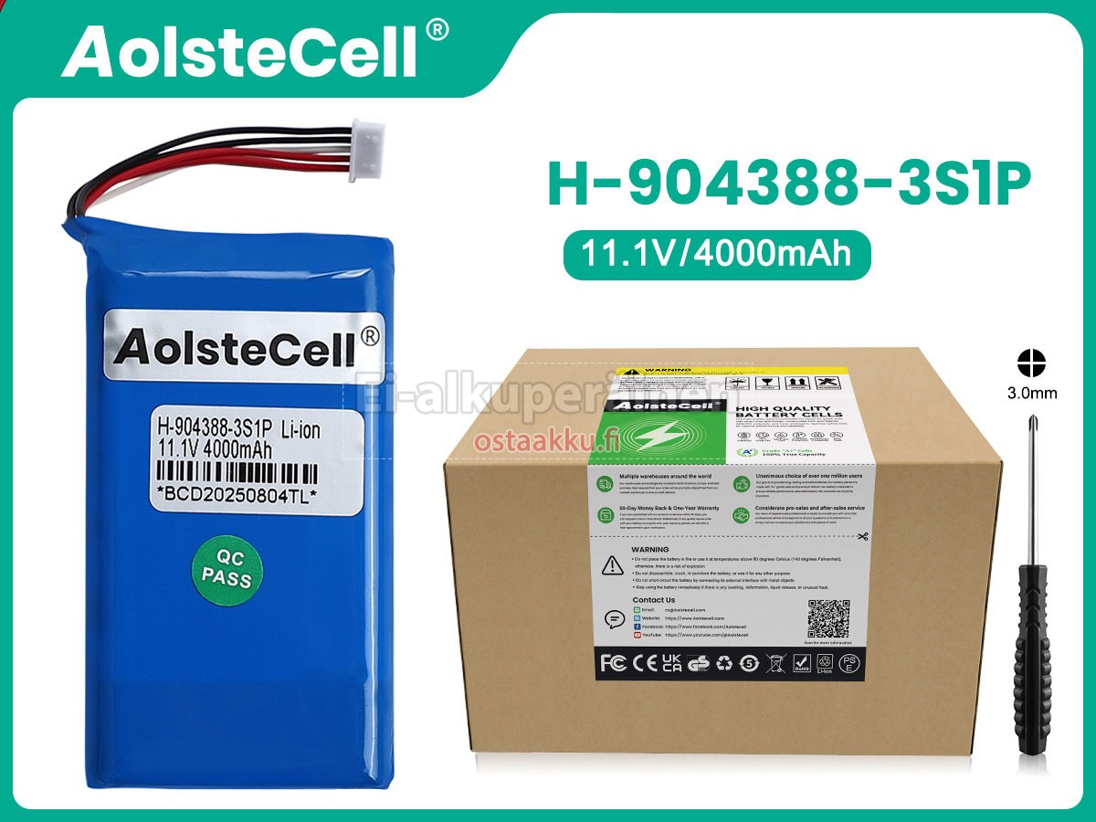 Vaihdettava akku AolsteCell H-904388-3S1P on uusi. Ehdottomasti ei myydä käytettyjä akku tai uudistettu. Akut ovat valmistettu parhaista solujen ja komponentteja.