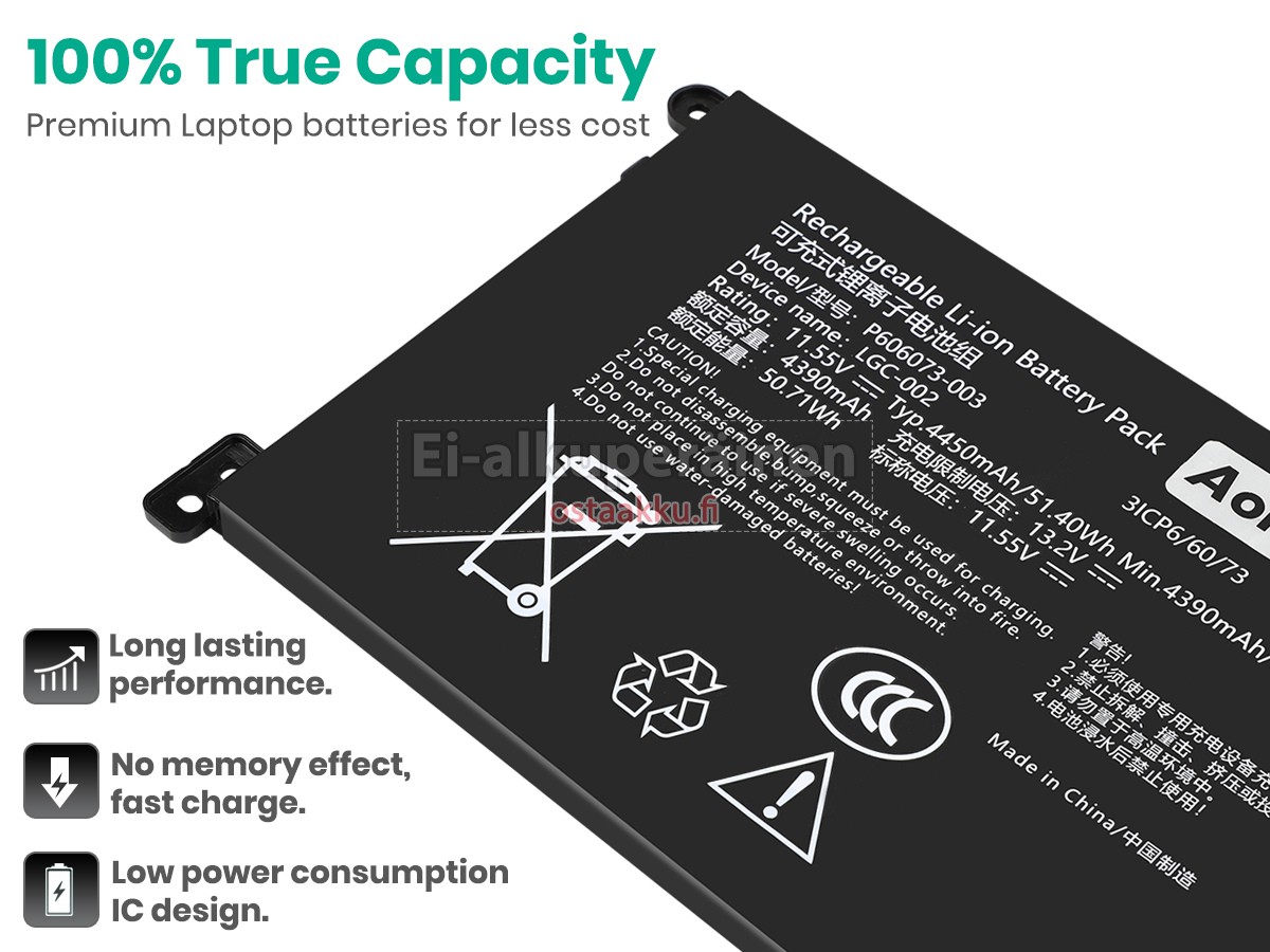 Vaihdettava akku AolsteCell P606073-003 on uusi. Ehdottomasti ei myydä käytettyjä akku tai uudistettu. Akut ovat valmistettu parhaista solujen ja komponentteja.