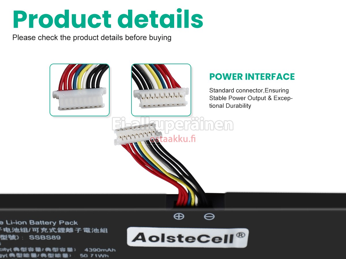 Varaenergian akku uusi AolsteCell SSBS89 valmistetaan hienoimmista solujen ja komponentteja. AolsteCell SSBS89 akku säädetään in abc.com hyväksytyn UN38.3, RCM, CE, UL, ROHS, ISO9001/ISO9002 ja muiden kansainvälisten sertifiointia. Jotta voidaan minimoida mahdollinen turvallisuusriski ja varmistaa hyvän käyttäjäkokemuksen, tarjotaan erilaisia suojatoimia AolsteCell SSBS89 Kannettavani akku kuten lämpösuojaus, virtapiirin suojaus, ylijännitesuojaus, laitteiston suojaus ja kynnyksen lähtövirran.