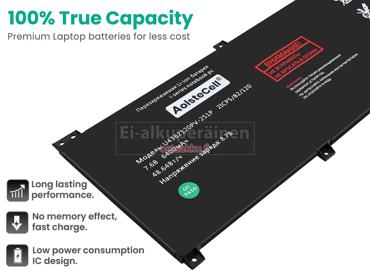 Vaihdettava akku AolsteCell U4382120PV-2S1P on uusi. Ehdottomasti ei myydä käytettyjä akku tai uudistettu. Akut ovat valmistettu parhaista solujen ja komponentteja.
