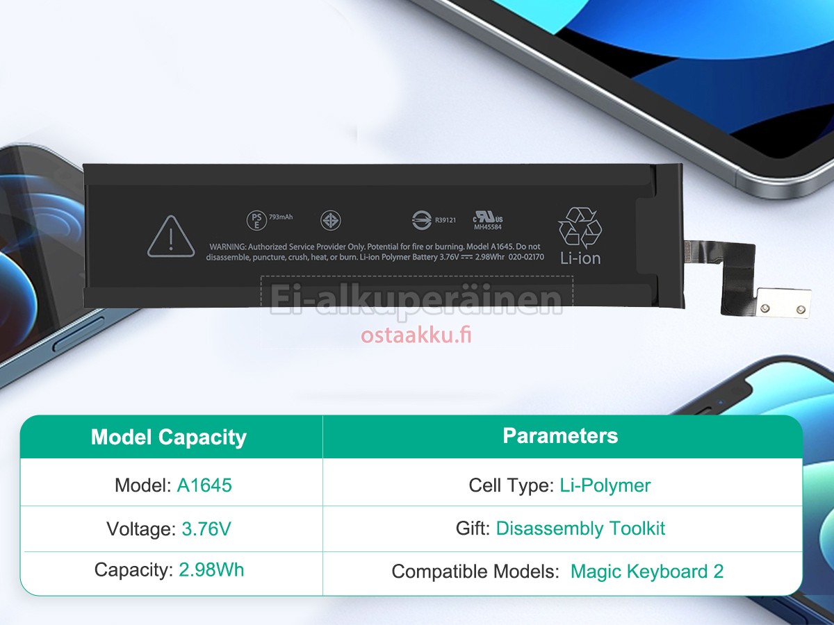 Vaihdettava akku Apple 020-00461 on uusi. Ehdottomasti ei myydä käytettyjä akku tai uudistettu. Akut ovat valmistettu parhaista solujen ja komponentteja.