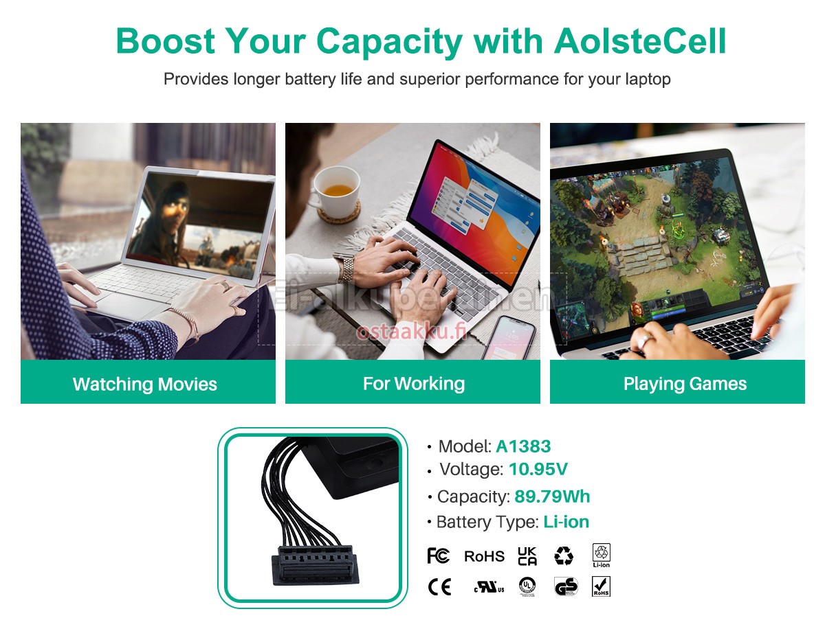Vaihdettava akku Apple MacBook Pro 17 inch MD311B/A on uusi. Ehdottomasti ei myydä käytettyjä akku tai uudistettu. Akut ovat valmistettu parhaista solujen ja komponentteja.