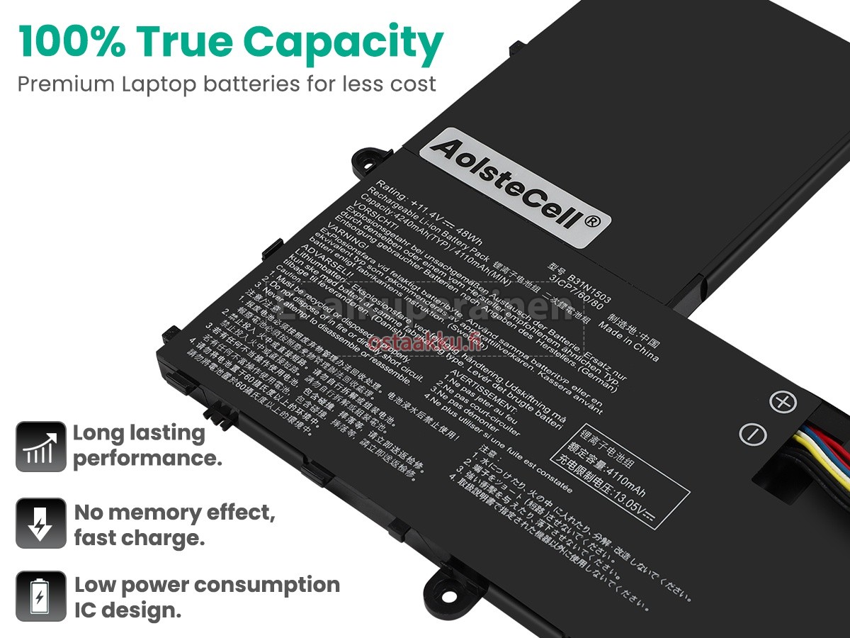 Vaihdettava akku Asus B31N1503 on uusi. Ehdottomasti ei myydä käytettyjä akku tai uudistettu. Akut ovat valmistettu parhaista solujen ja komponentteja.