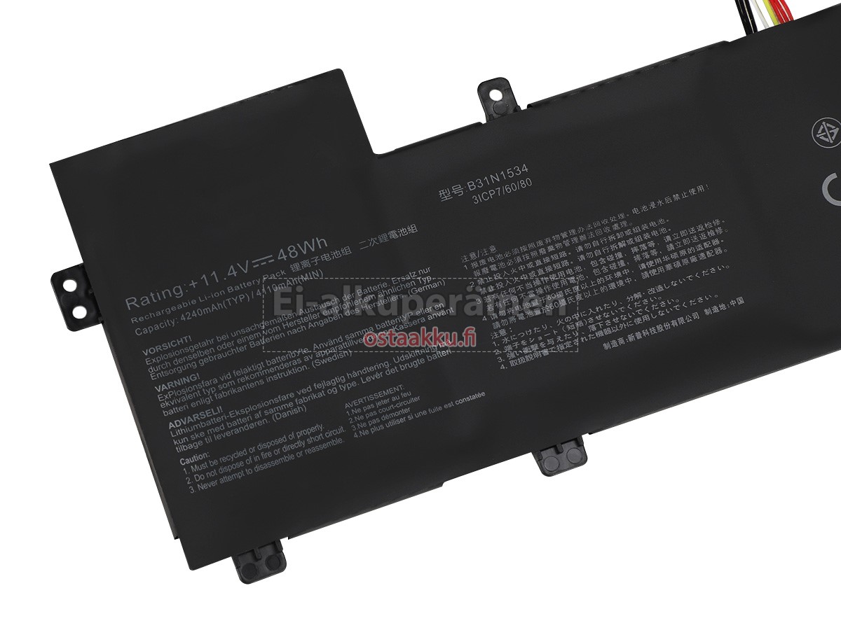 Ei ole suositeltavaa irrottaa akku, jotta voimme jatkaa toimintaansa ja et menetä tietoja äkillisen sähkökatkoksen. Jos haluat poistaa, on suositeltavaa pakata Asus B31N1534 akun muovilla ja laita se kuivassa, viileässä paikassa, ja muista käyttää ja ladata akku vähintään kerran kuukaudessa, jotta vältetään aktiivisuuden menetystä.