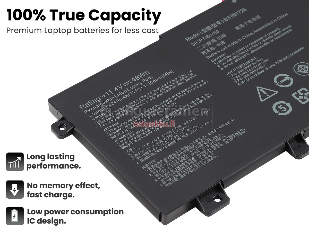 Itse asiassa tästä ei tarvitse huolehtia, koska Asus B31N1726 käyttää litium akku ja se on varustettu suojatoimenpiteillä ylikuormituksen estämiseksi. Kun akku on ladattu täyteen, kannettavani akku saa virtansa virtalähteestä, ei akku.. Siten kannettavani voidaan käyttää sidosenergialla eivätkä aiheuta vahinkoa akku.
