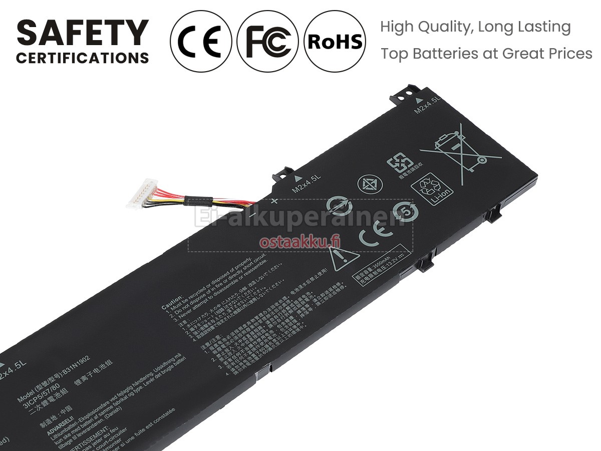 Varaenergian akku uusi Asus B31N1902 valmistetaan hienoimmista solujen ja komponentteja. Asus B31N1902 akku säädetään in abc.com hyväksytyn UN38.3, RCM, CE, UL, ROHS, ISO9001/ISO9002 ja muiden kansainvälisten sertifiointia. Jotta voidaan minimoida mahdollinen turvallisuusriski ja varmistaa hyvän käyttäjäkokemuksen, tarjotaan erilaisia suojatoimia Asus B31N1902 Kannettavani akku kuten lämpösuojaus, virtapiirin suojaus, ylijännitesuojaus, laitteiston suojaus ja kynnyksen lähtövirran.