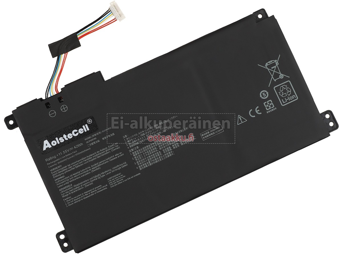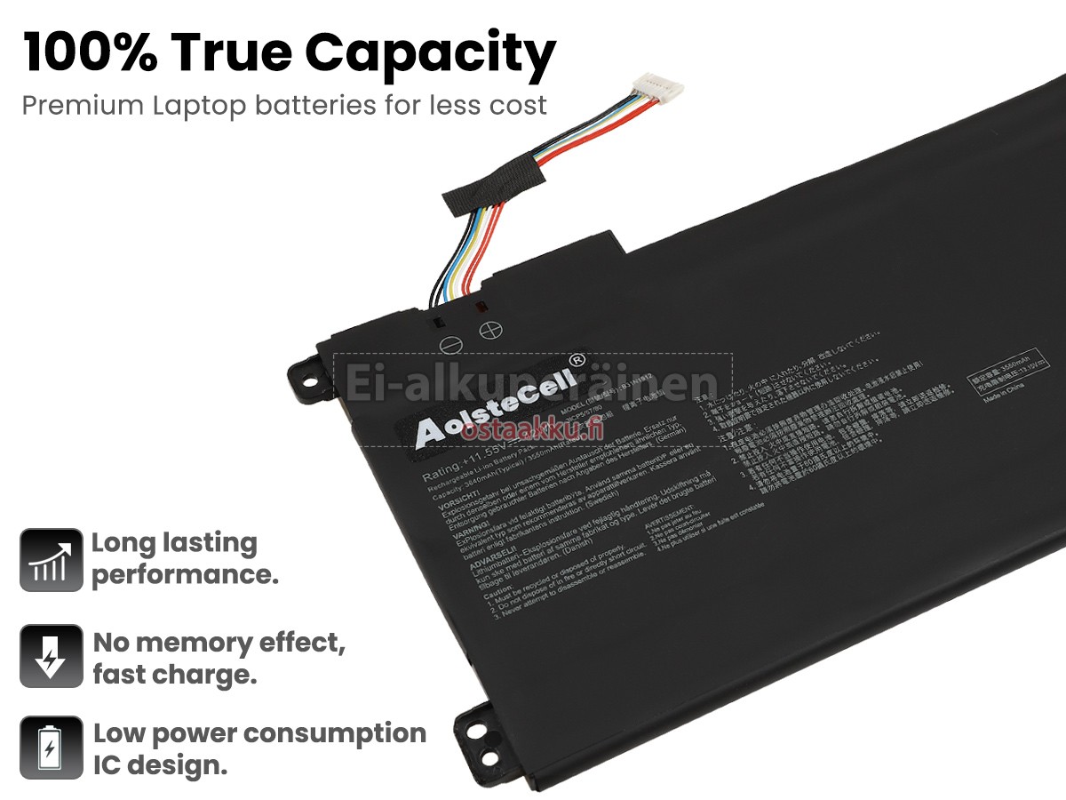 Vaihdettava akku Asus B31N1912 on uusi. Ehdottomasti ei myydä käytettyjä akku tai uudistettu. Akut ovat valmistettu parhaista solujen ja komponentteja.