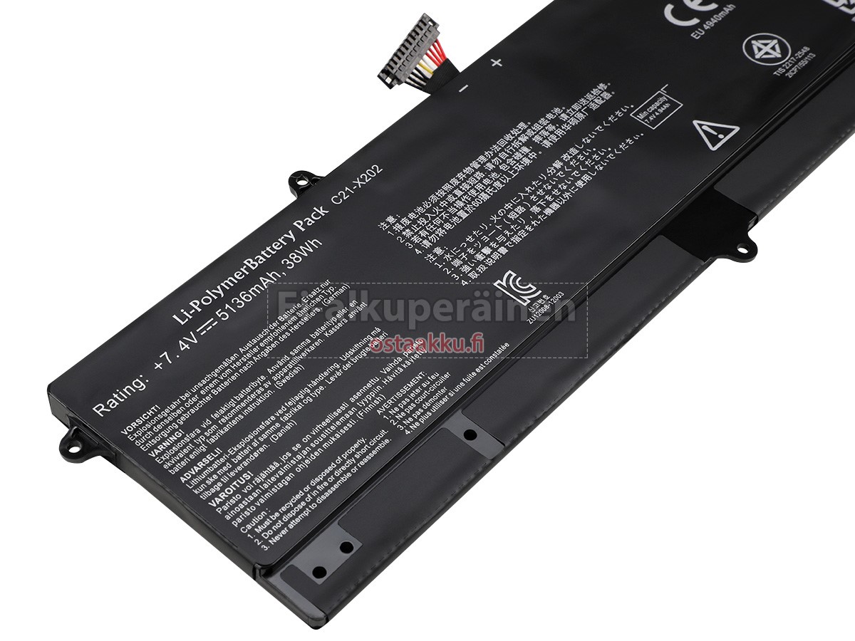 Ei ole suositeltavaa irrottaa akku, jotta voimme jatkaa toimintaansa ja et menetä tietoja äkillisen sähkökatkoksen. Jos haluat poistaa, on suositeltavaa pakata Asus C21-X202 akun muovilla ja laita se kuivassa, viileässä paikassa, ja muista käyttää ja ladata akku vähintään kerran kuukaudessa, jotta vältetään aktiivisuuden menetystä.