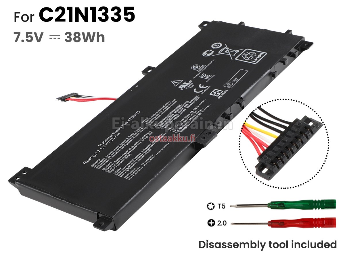 Vaihdettava akku Asus C21N1335 on uusi. Ehdottomasti ei myydä käytettyjä akku tai uudistettu. Akut ovat valmistettu parhaista solujen ja komponentteja.