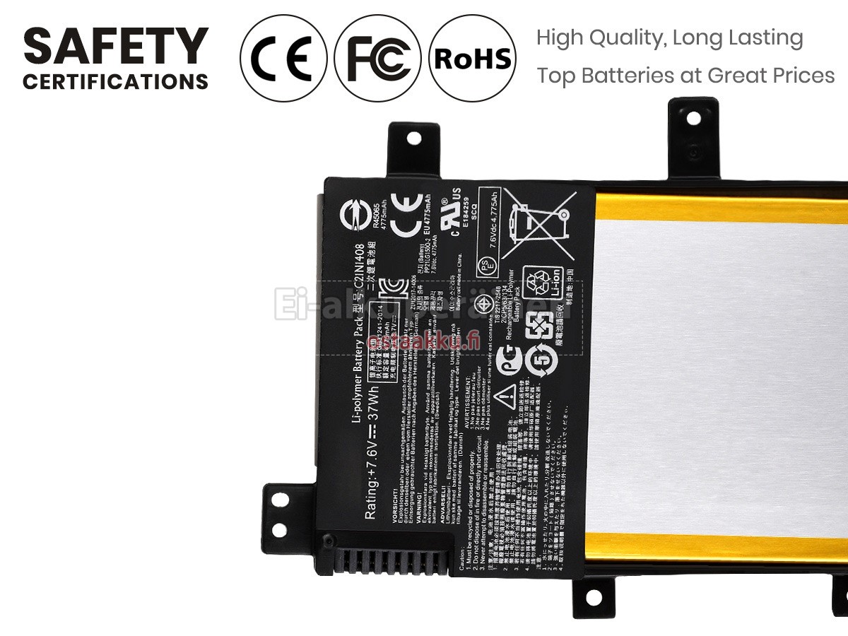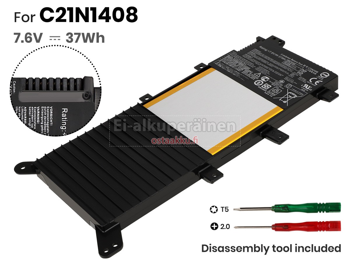 Vaihdettava akku Asus C21N1408 on uusi. Ehdottomasti ei myydä käytettyjä akku tai uudistettu. Akut ovat valmistettu parhaista solujen ja komponentteja.