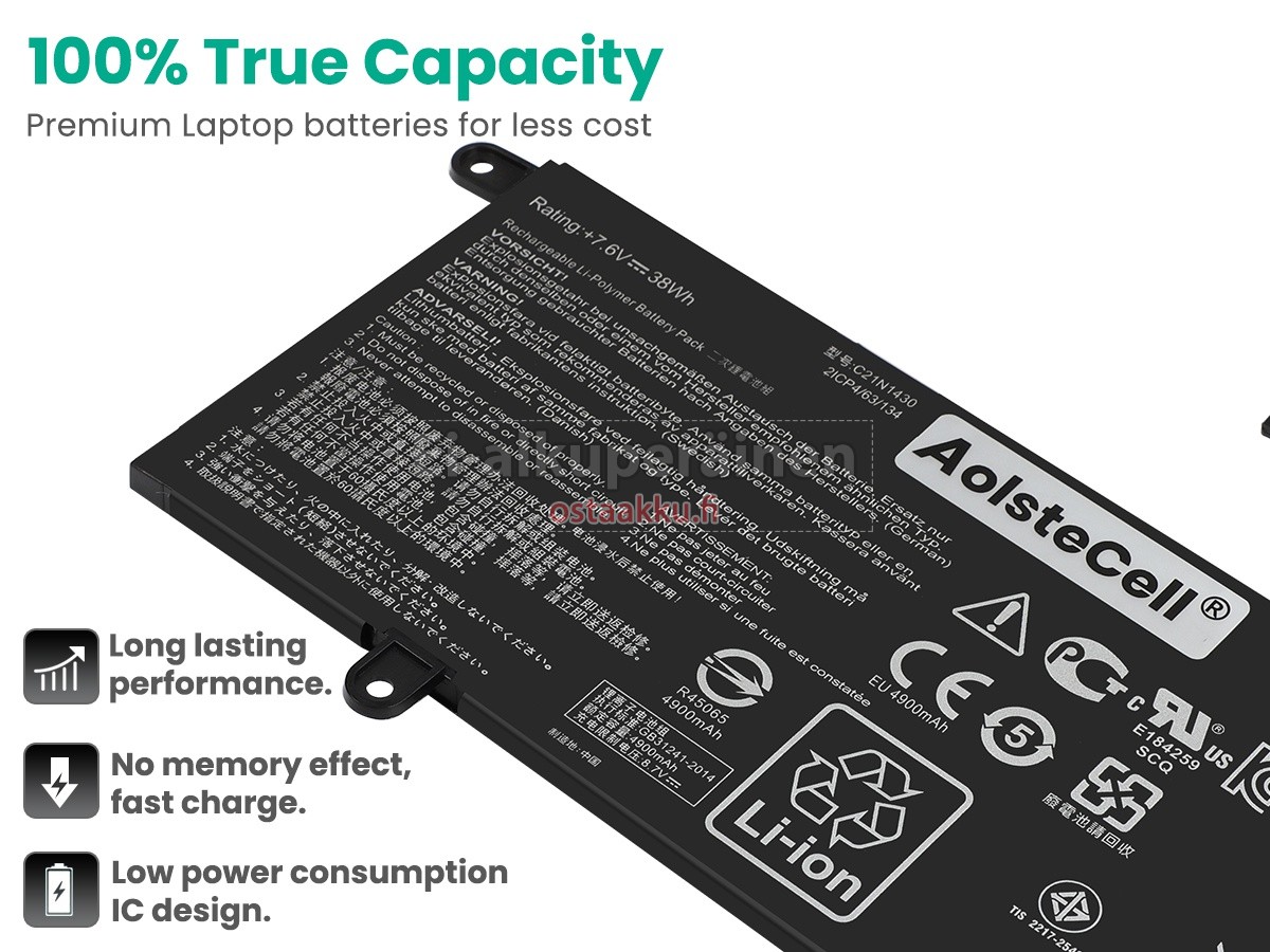 Ei muita eroja, paitsi ilman akku tuotemerkkiä. Kaikki akkuja ovat saatavilla in ostaakku.fi valmiustilassa paristot alkuperäisiä valmistajia. Hyväksyy ytimet ja älykäs soluja, kuten alkuperäisiä valmistajia, joten suorituskyky ja yhteensopivuus Asus C21N1430 akku on samanlainen kuin alkuperäisen akku ja paremmin. Tämä vähentää palkkion brändistä, varmistaa laadun. Monet asiakkaat ajattelevat, että alkuperäinen akku on parempi suorituskyky. Itse asiassa, kannettavani akkuja tuotemerkkejä ovat myös monet kolmannen osapuolen komponentteja (kuten Samsung, LG, jne). Kuten Kannettavani keskusyksikkö, brändin oma tietokoneyritys ei ole sitä kehittänyt.