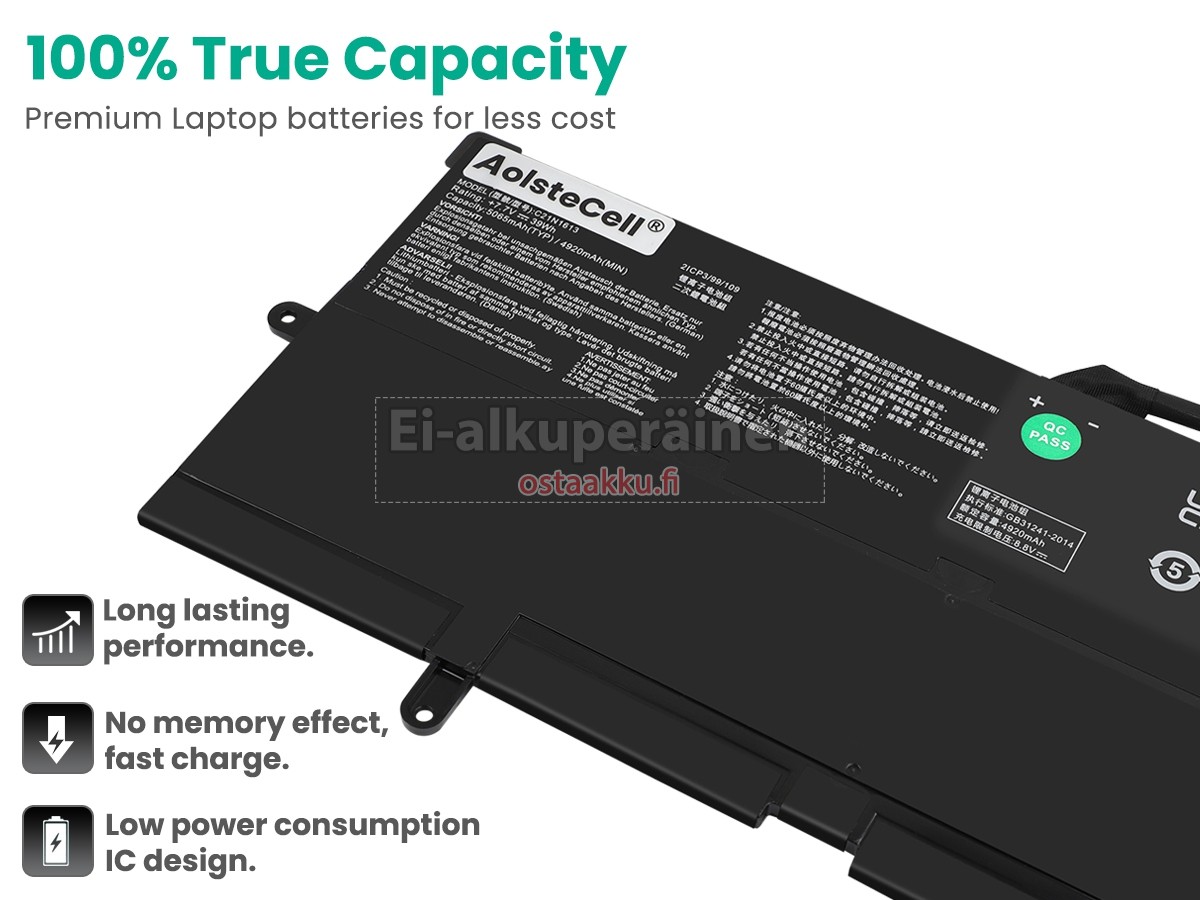 Ei muita eroja, paitsi ilman akku tuotemerkkiä. Kaikki akkuja ovat saatavilla in ostaakku.fi valmiustilassa paristot alkuperäisiä valmistajia. Hyväksyy ytimet ja älykäs soluja, kuten alkuperäisiä valmistajia, joten suorituskyky ja yhteensopivuus Asus C21N1613 akku on samanlainen kuin alkuperäisen akku ja paremmin. Tämä vähentää palkkion brändistä, varmistaa laadun. Monet asiakkaat ajattelevat, että alkuperäinen akku on parempi suorituskyky. Itse asiassa, kannettavani akkuja tuotemerkkejä ovat myös monet kolmannen osapuolen komponentteja (kuten Samsung, LG, jne). Kuten Kannettavani keskusyksikkö, brändin oma tietokoneyritys ei ole sitä kehittänyt.