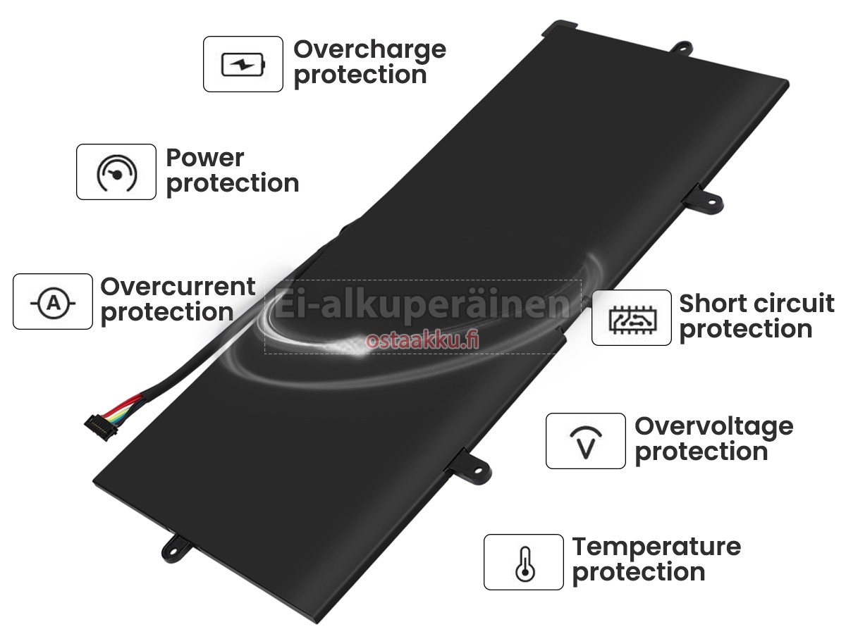 Varaenergian akku uusi Asus C21N1613 valmistetaan hienoimmista solujen ja komponentteja. Asus C21N1613 akku säädetään in abc.com hyväksytyn UN38.3, RCM, CE, UL, ROHS, ISO9001/ISO9002 ja muiden kansainvälisten sertifiointia. Jotta voidaan minimoida mahdollinen turvallisuusriski ja varmistaa hyvän käyttäjäkokemuksen, tarjotaan erilaisia suojatoimia Asus C21N1613 Kannettavani akku kuten lämpösuojaus, virtapiirin suojaus, ylijännitesuojaus, laitteiston suojaus ja kynnyksen lähtövirran.