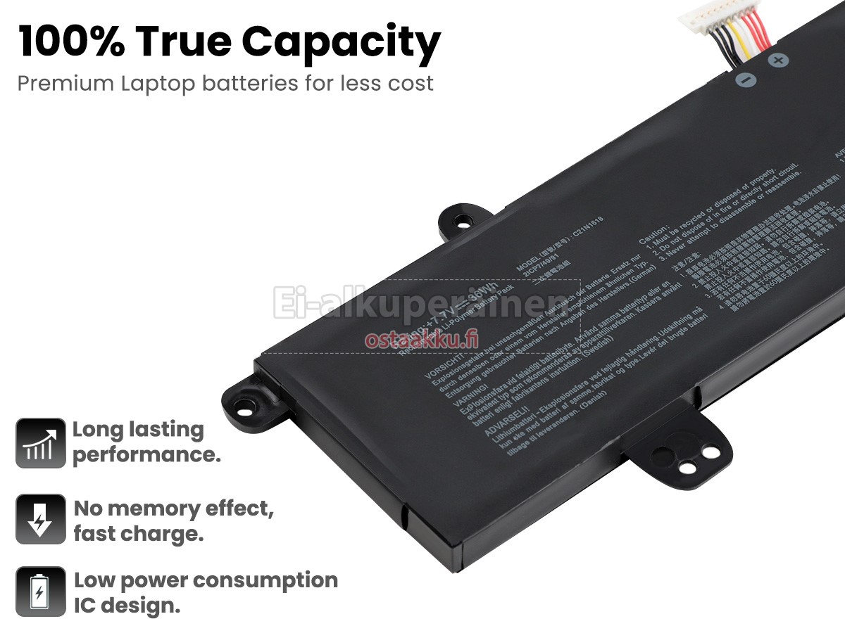 Vaihdettava akku Asus C21N1618 on uusi. Ehdottomasti ei myydä käytettyjä akku tai uudistettu. Akut ovat valmistettu parhaista solujen ja komponentteja.