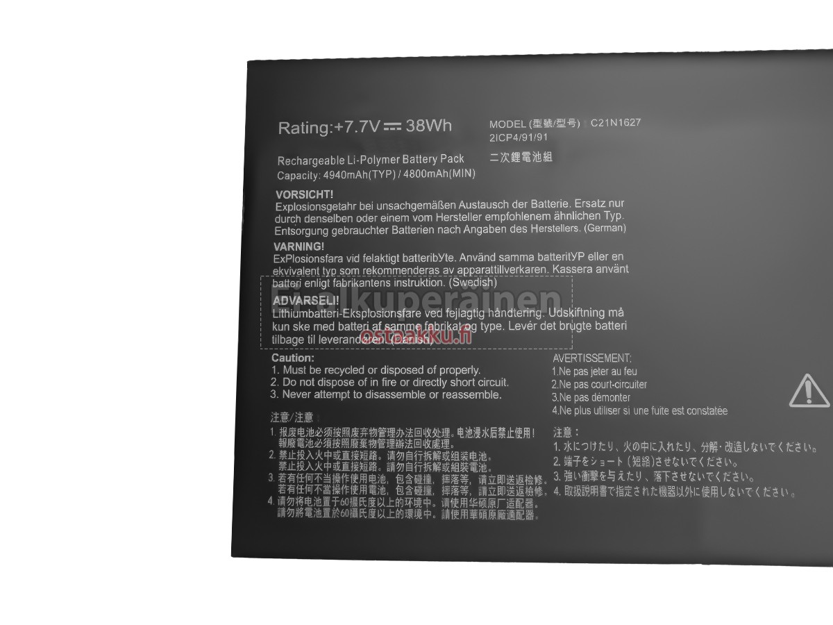 Vaihdettava akku Asus C21N1627 on uusi. Ehdottomasti ei myydä käytettyjä akku tai uudistettu. Akut ovat valmistettu parhaista solujen ja komponentteja.