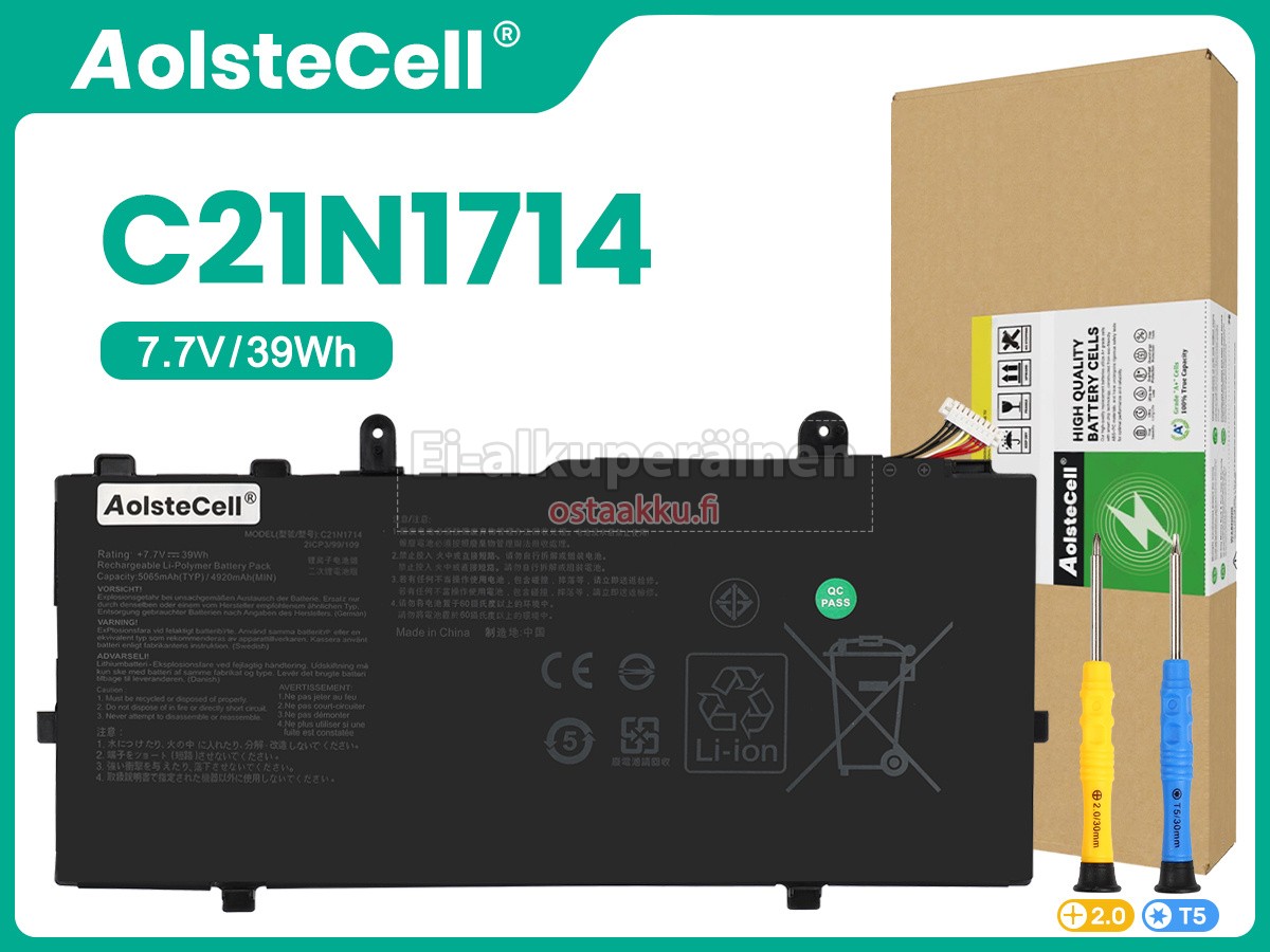 Vaihdettava akku Asus C21N1714 on uusi. Ehdottomasti ei myydä käytettyjä akku tai uudistettu. Akut ovat valmistettu parhaista solujen ja komponentteja.