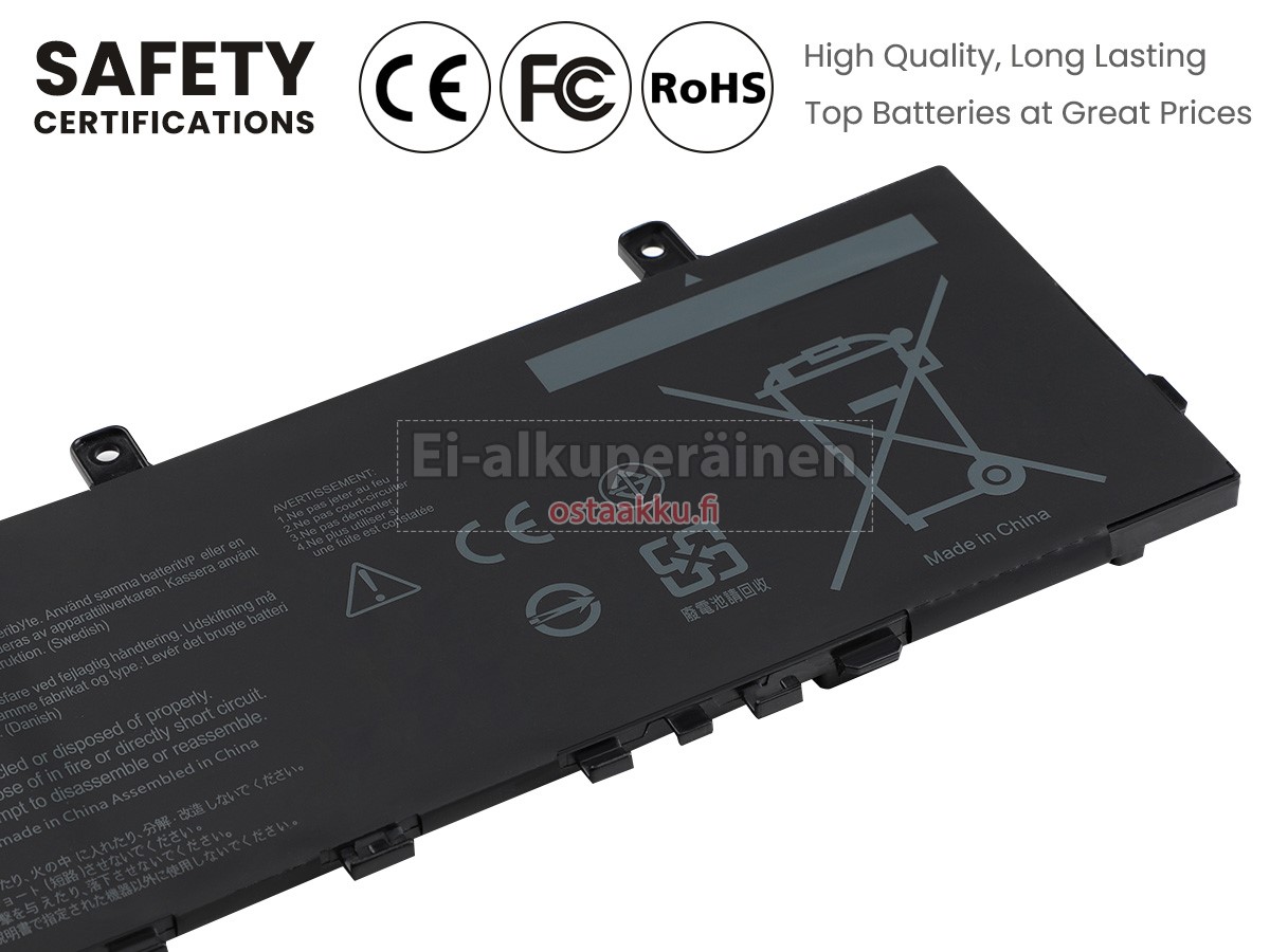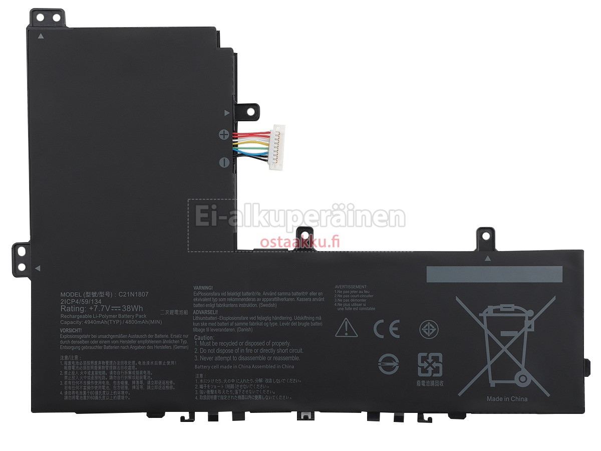 Vaihdettava akku Asus C21N1807 on uusi. Ehdottomasti ei myydä käytettyjä akku tai uudistettu. Akut ovat valmistettu parhaista solujen ja komponentteja.
