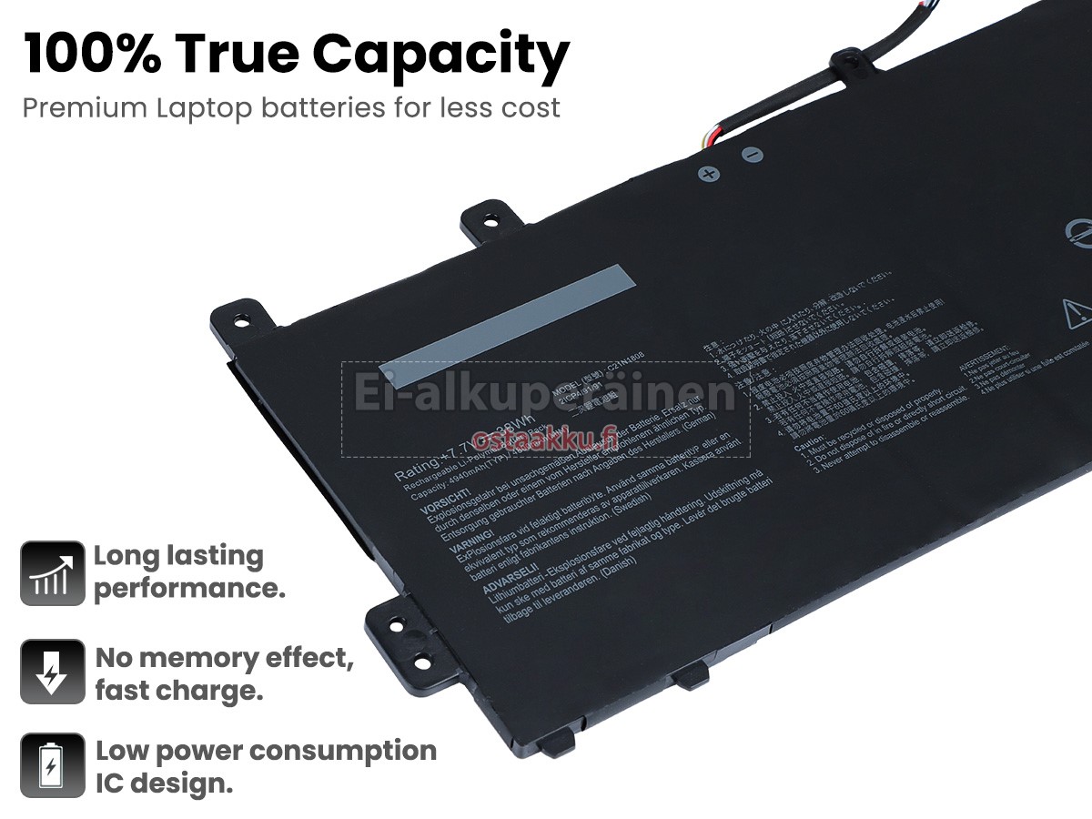 Vaihdettava akku Asus C21N1808 on uusi. Ehdottomasti ei myydä käytettyjä akku tai uudistettu. Akut ovat valmistettu parhaista solujen ja komponentteja.