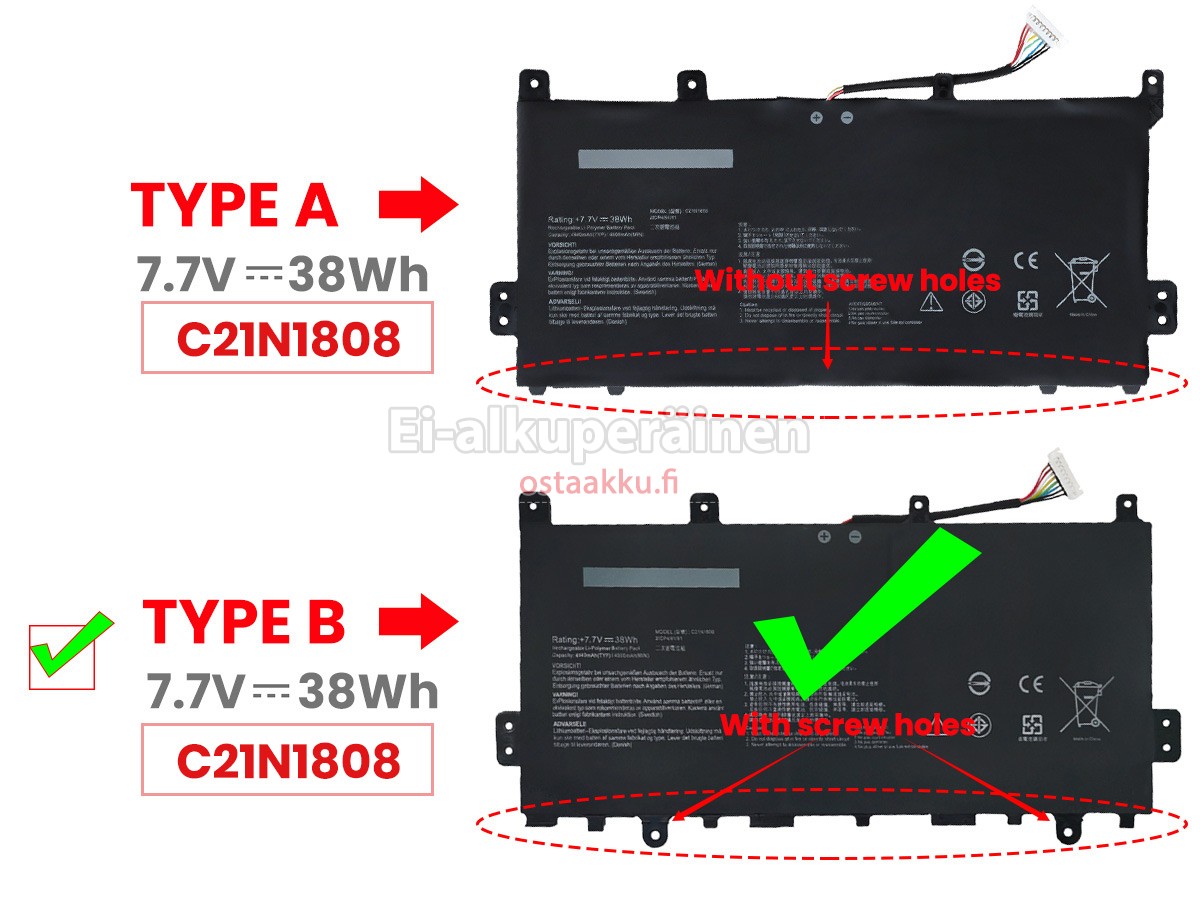 Ei muita eroja, paitsi ilman akku tuotemerkkiä. Kaikki akkuja ovat saatavilla in ostaakku.fi valmiustilassa paristot alkuperäisiä valmistajia. Hyväksyy ytimet ja älykäs soluja, kuten alkuperäisiä valmistajia, joten suorituskyky ja yhteensopivuus Asus C21N1808 akku on samanlainen kuin alkuperäisen akku ja paremmin. Tämä vähentää palkkion brändistä, varmistaa laadun. Monet asiakkaat ajattelevat, että alkuperäinen akku on parempi suorituskyky. Itse asiassa, kannettavani akkuja tuotemerkkejä ovat myös monet kolmannen osapuolen komponentteja (kuten Samsung, LG, jne). Kuten Kannettavani keskusyksikkö, brändin oma tietokoneyritys ei ole sitä kehittänyt.