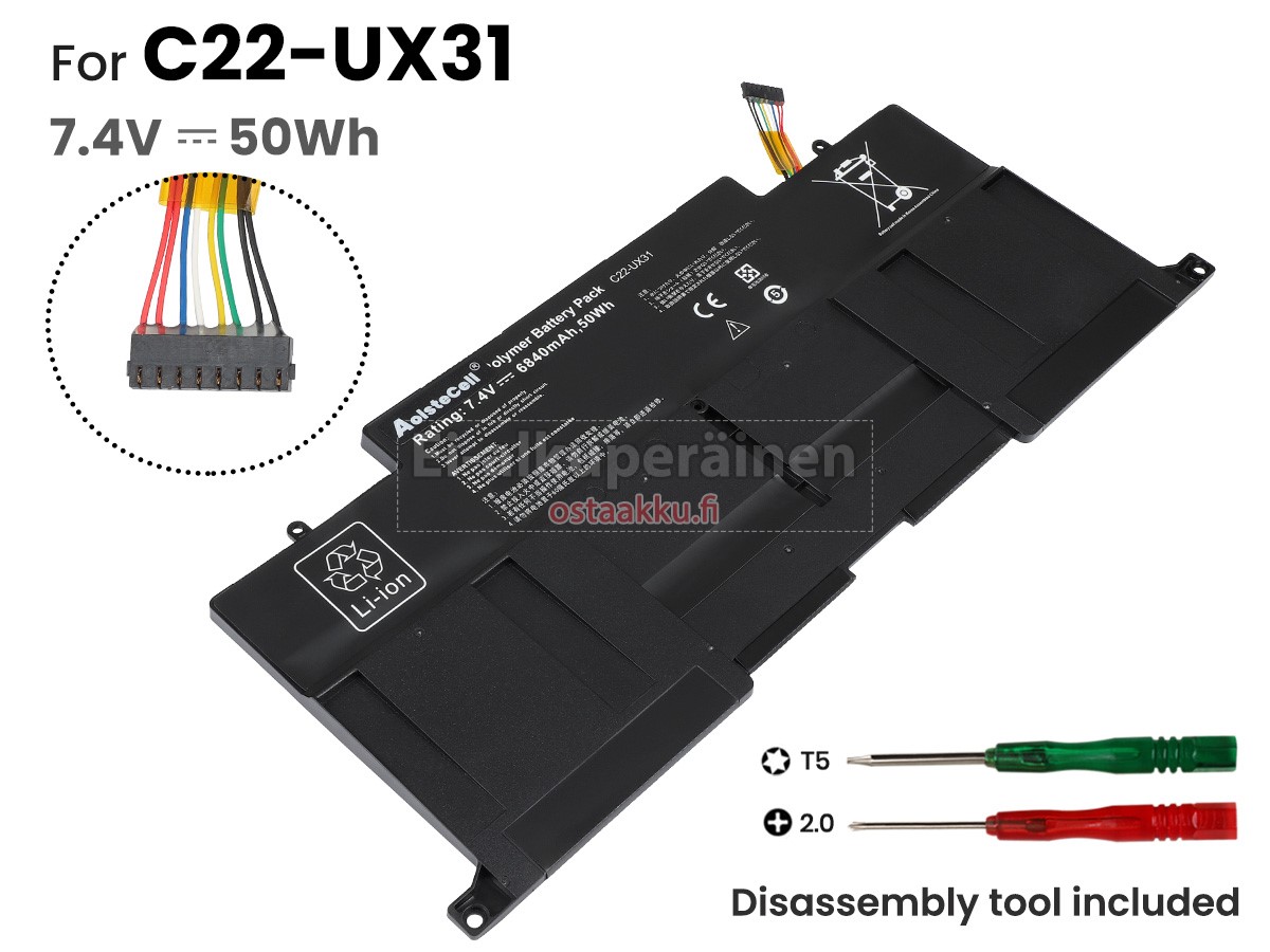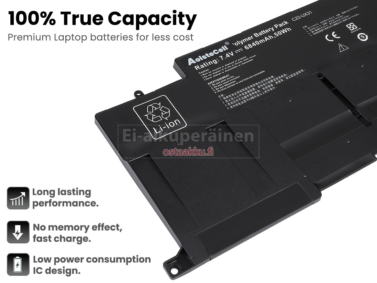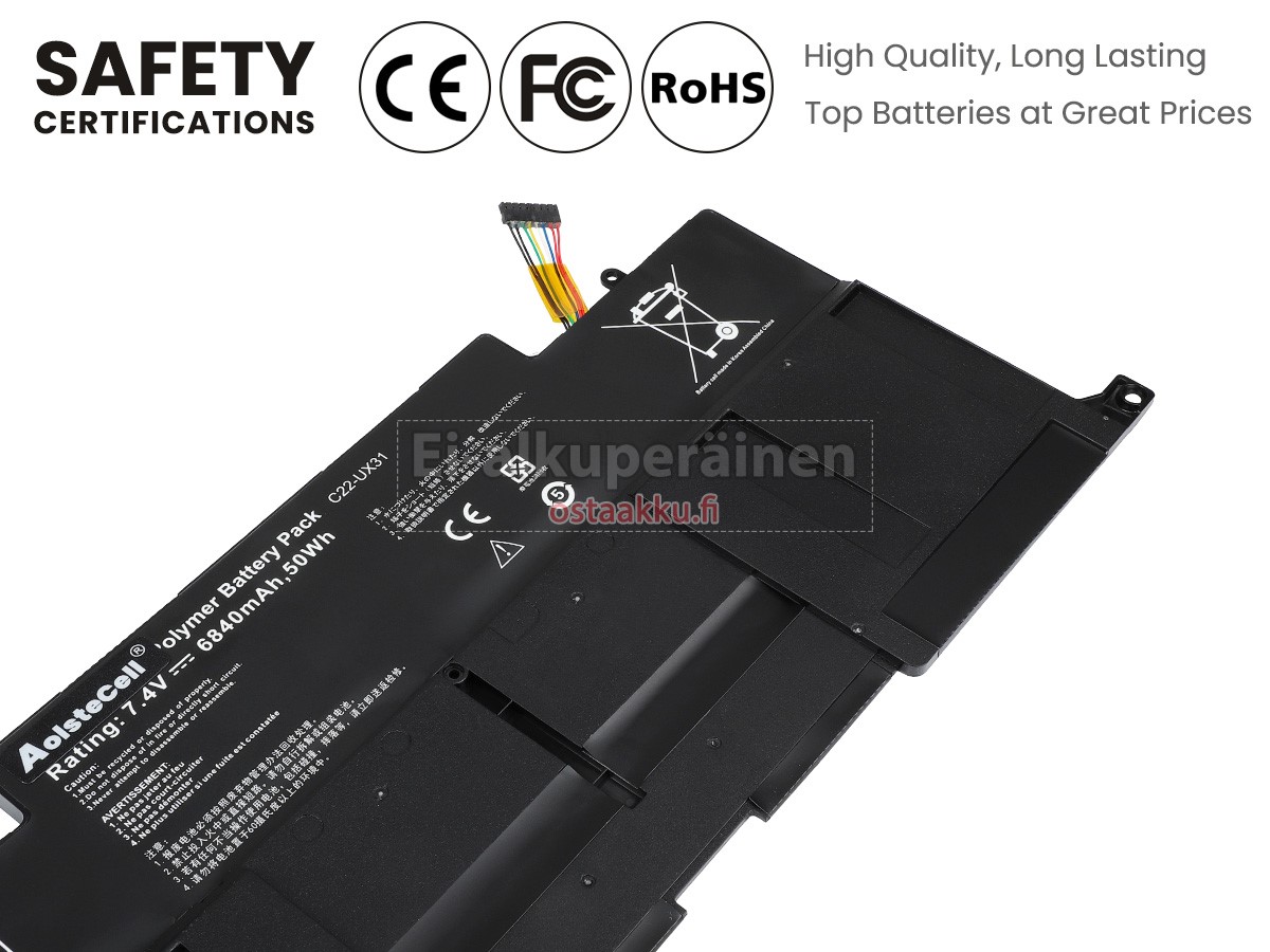 Vaihdettava akku Asus C22-UX31 on uusi. Ehdottomasti ei myydä käytettyjä akku tai uudistettu. Akut ovat valmistettu parhaista solujen ja komponentteja.