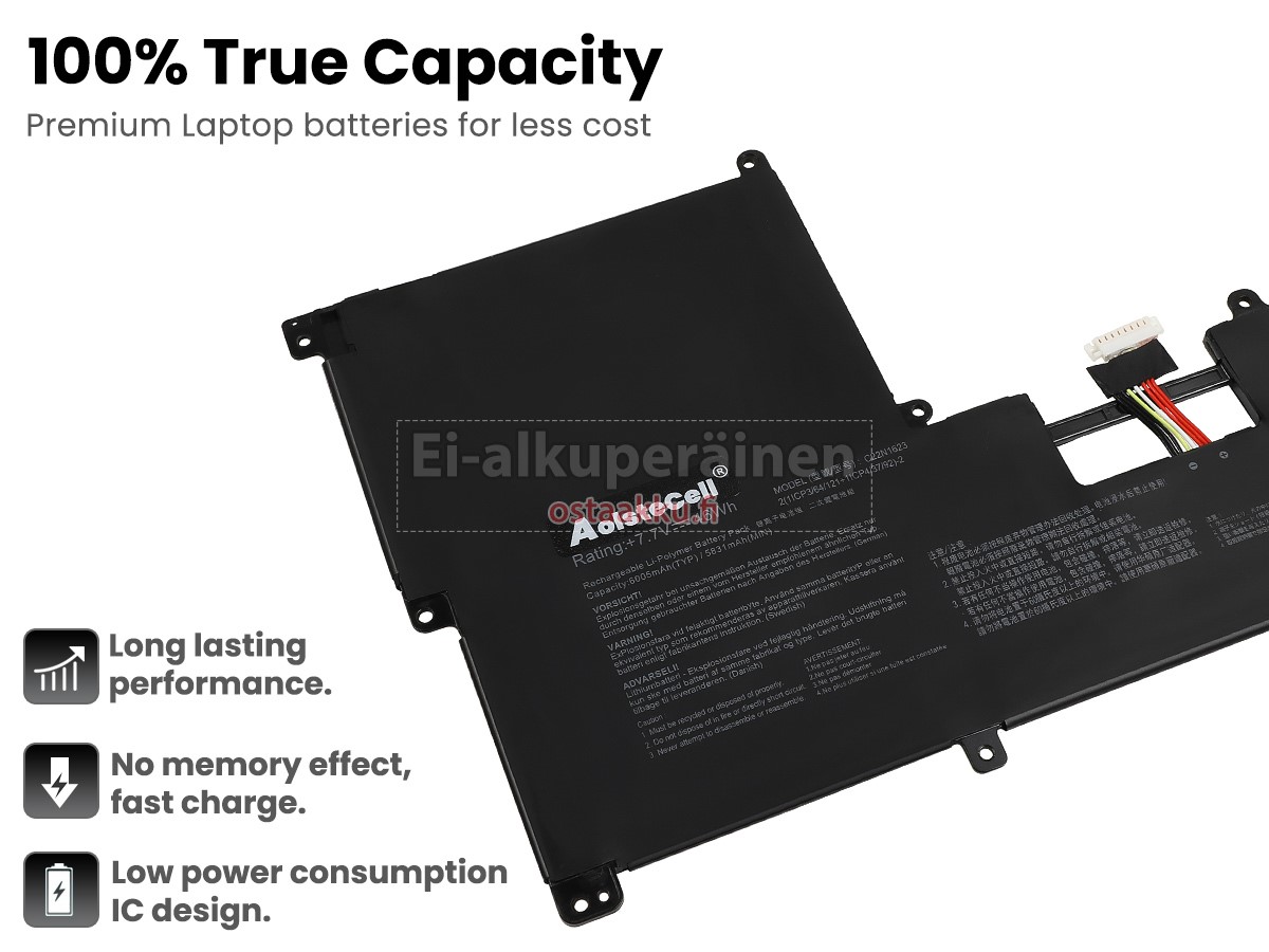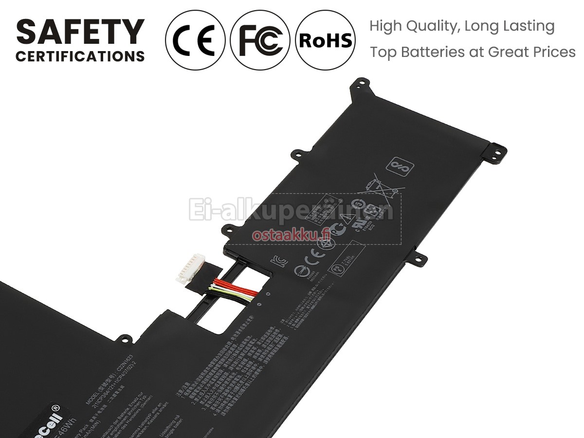 Vaihdettava akku Asus C22N1623 on uusi. Ehdottomasti ei myydä käytettyjä akku tai uudistettu. Akut ovat valmistettu parhaista solujen ja komponentteja.