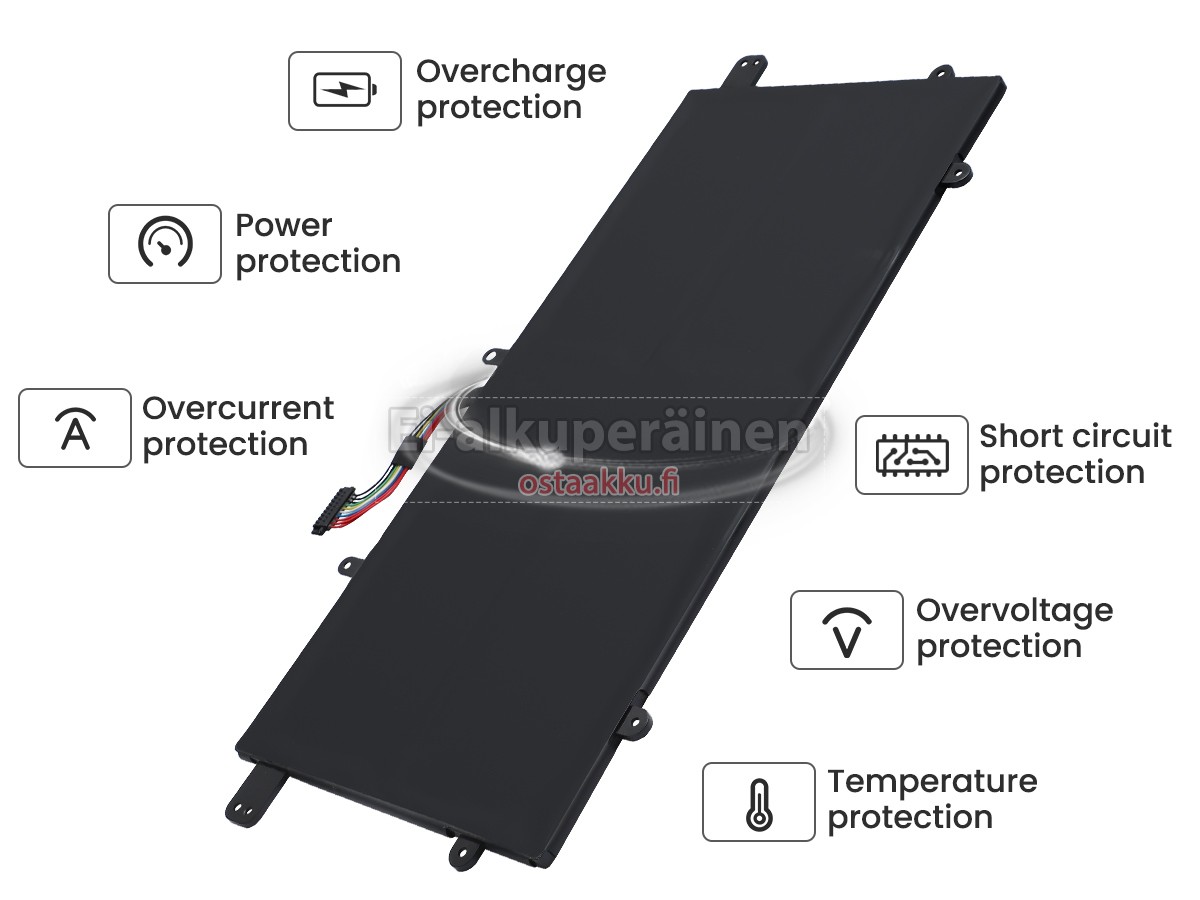 Varaenergian akku uusi Asus C22N2309 valmistetaan hienoimmista solujen ja komponentteja. Asus C22N2309 akku säädetään in abc.com hyväksytyn UN38.3, RCM, CE, UL, ROHS, ISO9001/ISO9002 ja muiden kansainvälisten sertifiointia. Jotta voidaan minimoida mahdollinen turvallisuusriski ja varmistaa hyvän käyttäjäkokemuksen, tarjotaan erilaisia suojatoimia Asus C22N2309 Kannettavani akku kuten lämpösuojaus, virtapiirin suojaus, ylijännitesuojaus, laitteiston suojaus ja kynnyksen lähtövirran.