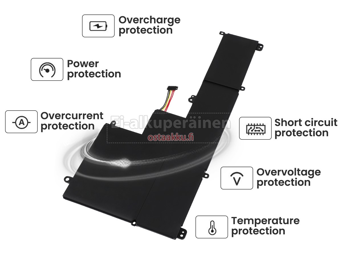Varaenergian akku uusi Asus C23N1606 valmistetaan hienoimmista solujen ja komponentteja. Asus C23N1606 akku säädetään in abc.com hyväksytyn UN38.3, RCM, CE, UL, ROHS, ISO9001/ISO9002 ja muiden kansainvälisten sertifiointia. Jotta voidaan minimoida mahdollinen turvallisuusriski ja varmistaa hyvän käyttäjäkokemuksen, tarjotaan erilaisia suojatoimia Asus C23N1606 Kannettavani akku kuten lämpösuojaus, virtapiirin suojaus, ylijännitesuojaus, laitteiston suojaus ja kynnyksen lähtövirran.
