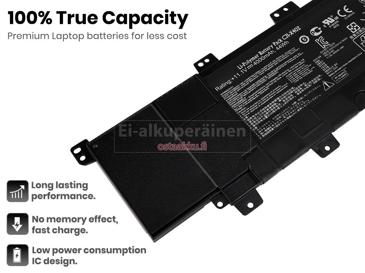 Ei muita eroja, paitsi ilman akku tuotemerkkiä. Kaikki akkuja ovat saatavilla in ostaakku.fi valmiustilassa paristot alkuperäisiä valmistajia. Hyväksyy ytimet ja älykäs soluja, kuten alkuperäisiä valmistajia, joten suorituskyky ja yhteensopivuus Asus C31-X402 akku on samanlainen kuin alkuperäisen akku ja paremmin. Tämä vähentää palkkion brändistä, varmistaa laadun. Monet asiakkaat ajattelevat, että alkuperäinen akku on parempi suorituskyky. Itse asiassa, kannettavani akkuja tuotemerkkejä ovat myös monet kolmannen osapuolen komponentteja (kuten Samsung, LG, jne). Kuten Kannettavani keskusyksikkö, brändin oma tietokoneyritys ei ole sitä kehittänyt.