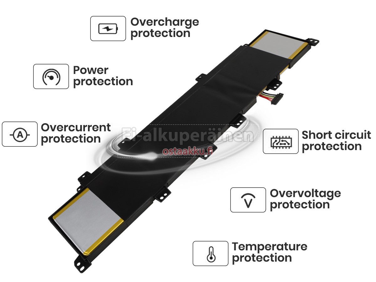 Varaenergian akku uusi Asus C31-X402 valmistetaan hienoimmista solujen ja komponentteja. Asus C31-X402 akku säädetään in abc.com hyväksytyn UN38.3, RCM, CE, UL, ROHS, ISO9001/ISO9002 ja muiden kansainvälisten sertifiointia. Jotta voidaan minimoida mahdollinen turvallisuusriski ja varmistaa hyvän käyttäjäkokemuksen, tarjotaan erilaisia suojatoimia Asus C31-X402 Kannettavani akku kuten lämpösuojaus, virtapiirin suojaus, ylijännitesuojaus, laitteiston suojaus ja kynnyksen lähtövirran.
