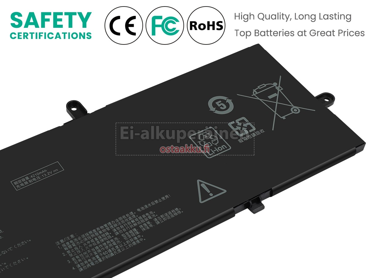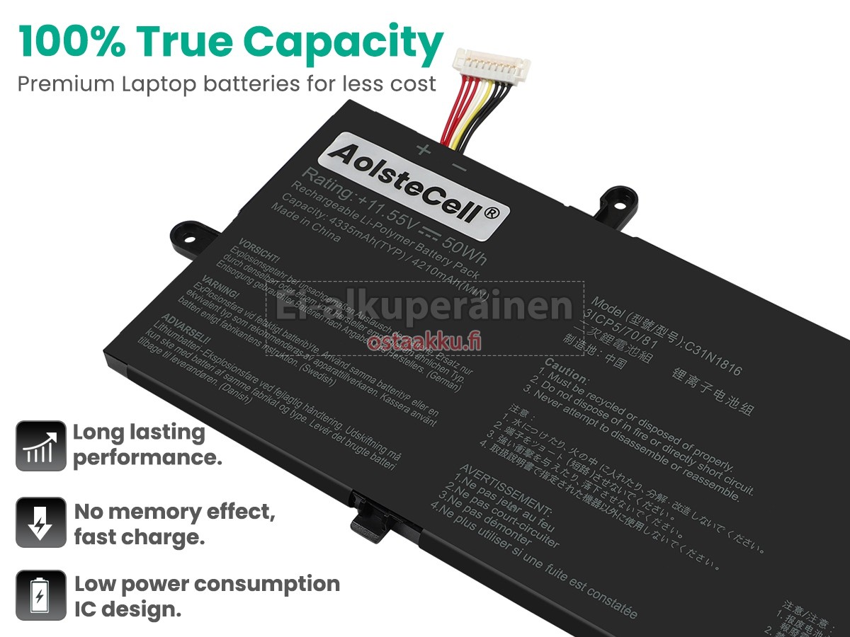 Varaenergian akku uusi Asus C31N1816 valmistetaan hienoimmista solujen ja komponentteja. Asus C31N1816 akku säädetään in abc.com hyväksytyn UN38.3, RCM, CE, UL, ROHS, ISO9001/ISO9002 ja muiden kansainvälisten sertifiointia. Jotta voidaan minimoida mahdollinen turvallisuusriski ja varmistaa hyvän käyttäjäkokemuksen, tarjotaan erilaisia suojatoimia Asus C31N1816 Kannettavani akku kuten lämpösuojaus, virtapiirin suojaus, ylijännitesuojaus, laitteiston suojaus ja kynnyksen lähtövirran.