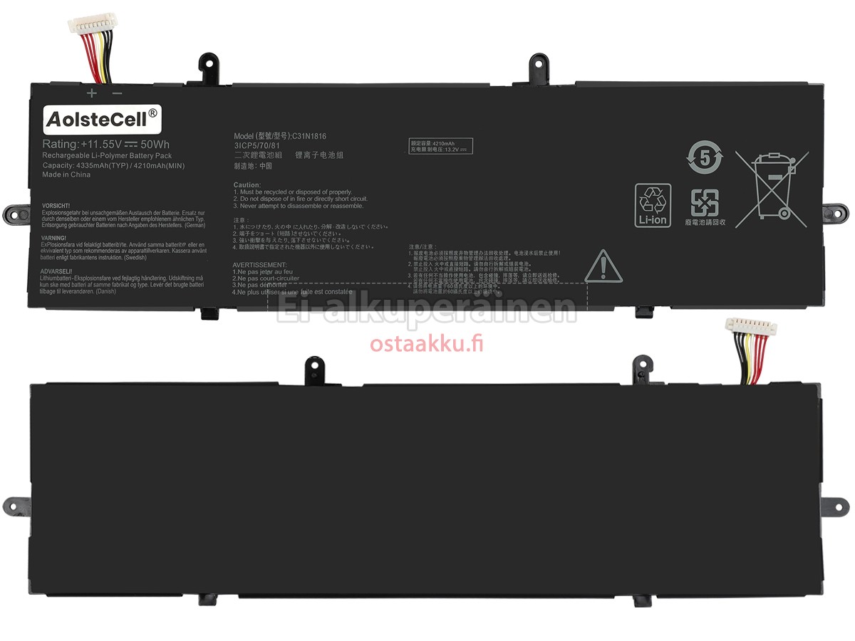 Ei muita eroja, paitsi ilman akku tuotemerkkiä. Kaikki akkuja ovat saatavilla in ostaakku.fi valmiustilassa paristot alkuperäisiä valmistajia. Hyväksyy ytimet ja älykäs soluja, kuten alkuperäisiä valmistajia, joten suorituskyky ja yhteensopivuus Asus C31N1816 akku on samanlainen kuin alkuperäisen akku ja paremmin. Tämä vähentää palkkion brändistä, varmistaa laadun. Monet asiakkaat ajattelevat, että alkuperäinen akku on parempi suorituskyky. Itse asiassa, kannettavani akkuja tuotemerkkejä ovat myös monet kolmannen osapuolen komponentteja (kuten Samsung, LG, jne). Kuten Kannettavani keskusyksikkö, brändin oma tietokoneyritys ei ole sitä kehittänyt.