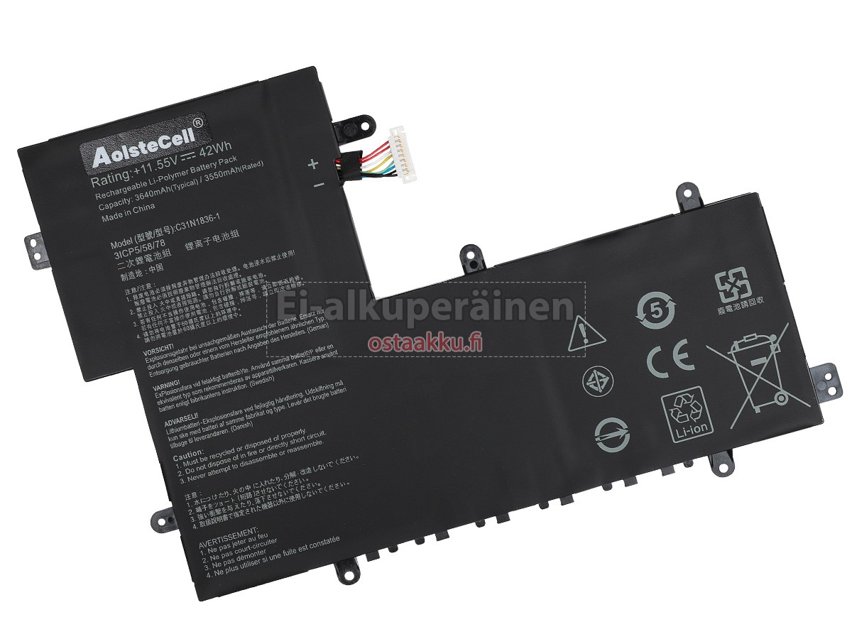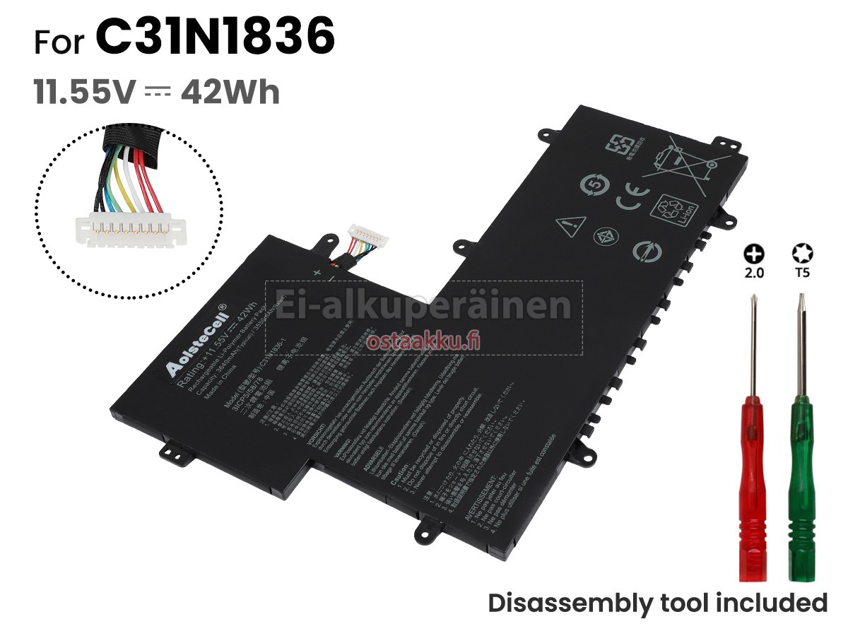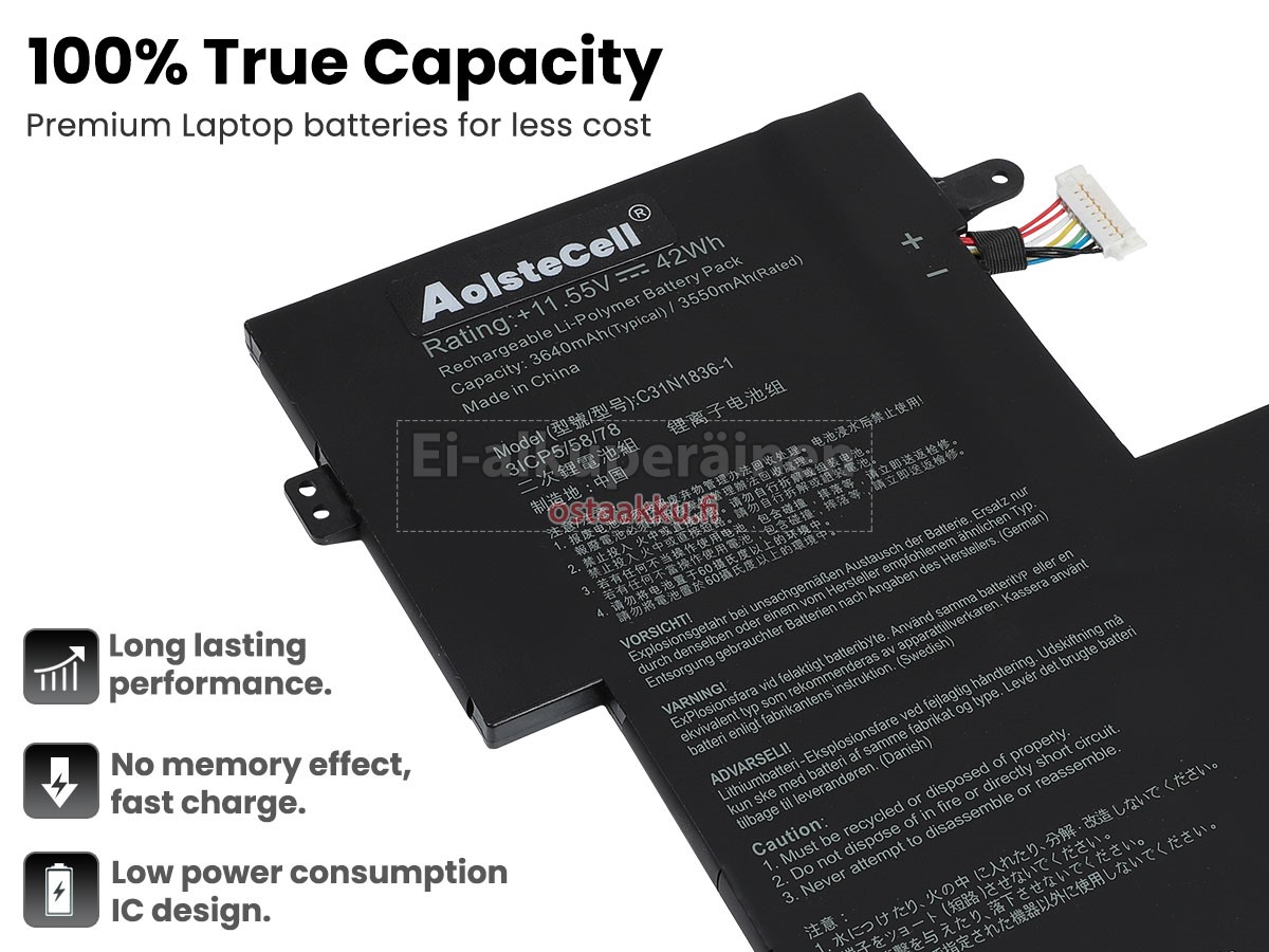 Vaihdettava akku Asus C31N1836 on uusi. Ehdottomasti ei myydä käytettyjä akku tai uudistettu. Akut ovat valmistettu parhaista solujen ja komponentteja.