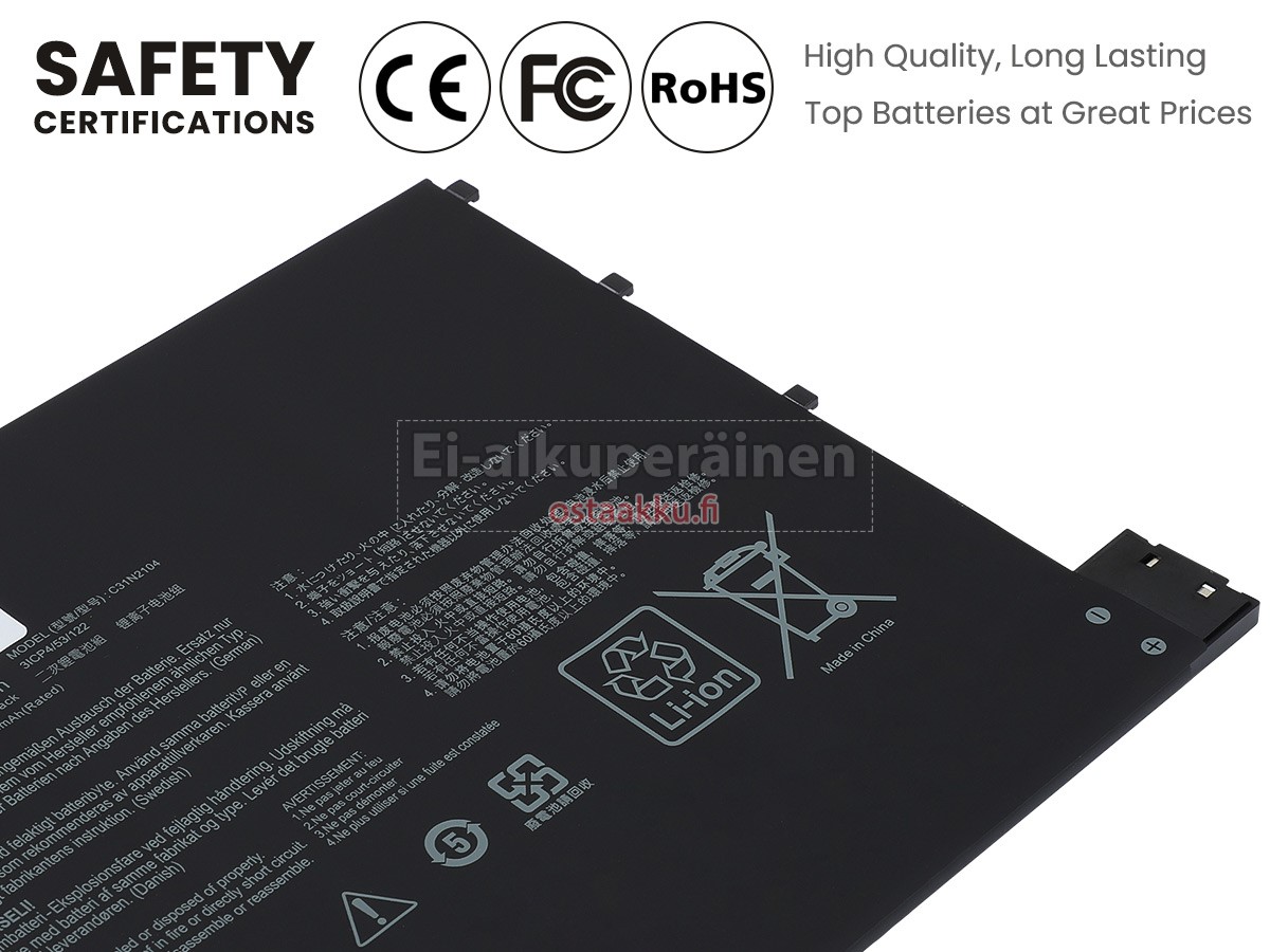 Vaihdettava akku Asus C31N2104 on uusi. Ehdottomasti ei myydä käytettyjä akku tai uudistettu. Akut ovat valmistettu parhaista solujen ja komponentteja.