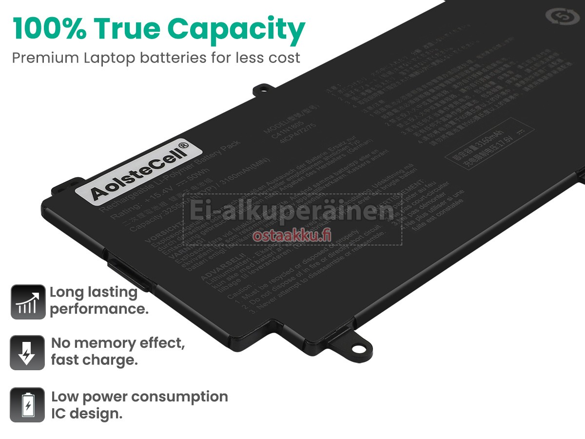 Vaihdettava akku Asus C41N1805 on uusi. Ehdottomasti ei myydä käytettyjä akku tai uudistettu. Akut ovat valmistettu parhaista solujen ja komponentteja.
