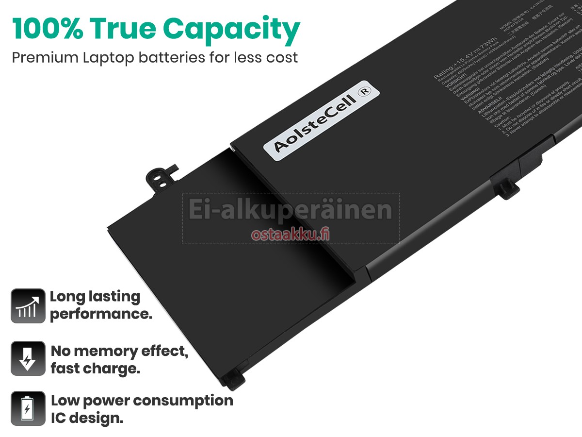 Ei muita eroja, paitsi ilman akku tuotemerkkiä. Kaikki akkuja ovat saatavilla in ostaakku.fi valmiustilassa paristot alkuperäisiä valmistajia. Hyväksyy ytimet ja älykäs soluja, kuten alkuperäisiä valmistajia, joten suorituskyky ja yhteensopivuus Asus C41N1814 akku on samanlainen kuin alkuperäisen akku ja paremmin. Tämä vähentää palkkion brändistä, varmistaa laadun. Monet asiakkaat ajattelevat, että alkuperäinen akku on parempi suorituskyky. Itse asiassa, kannettavani akkuja tuotemerkkejä ovat myös monet kolmannen osapuolen komponentteja (kuten Samsung, LG, jne). Kuten Kannettavani keskusyksikkö, brändin oma tietokoneyritys ei ole sitä kehittänyt.