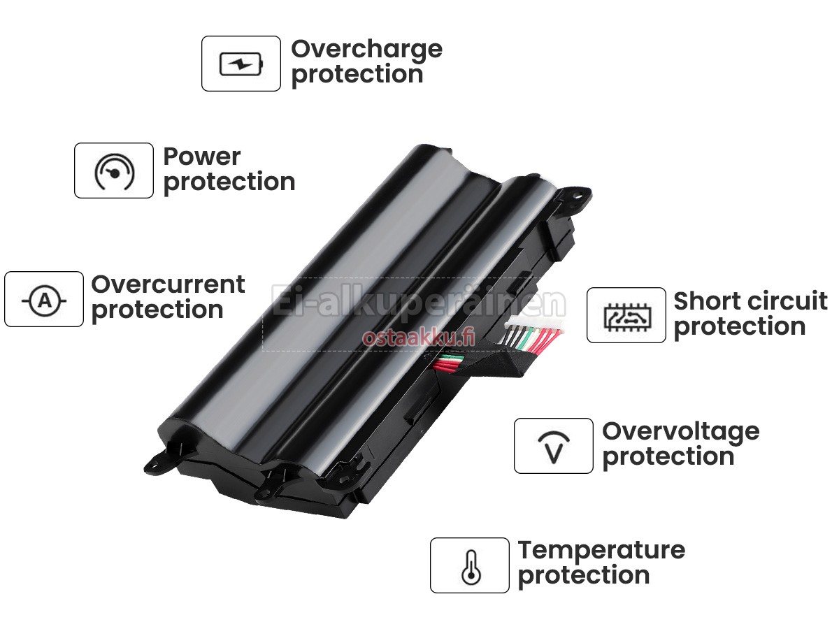 Varaenergian akku uusi Asus G752VT valmistetaan hienoimmista solujen ja komponentteja. Asus G752VT akku säädetään in abc.com hyväksytyn UN38.3, RCM, CE, UL, ROHS, ISO9001/ISO9002 ja muiden kansainvälisten sertifiointia. Jotta voidaan minimoida mahdollinen turvallisuusriski ja varmistaa hyvän käyttäjäkokemuksen, tarjotaan erilaisia suojatoimia Asus G752VT Kannettavani akku kuten lämpösuojaus, virtapiirin suojaus, ylijännitesuojaus, laitteiston suojaus ja kynnyksen lähtövirran.