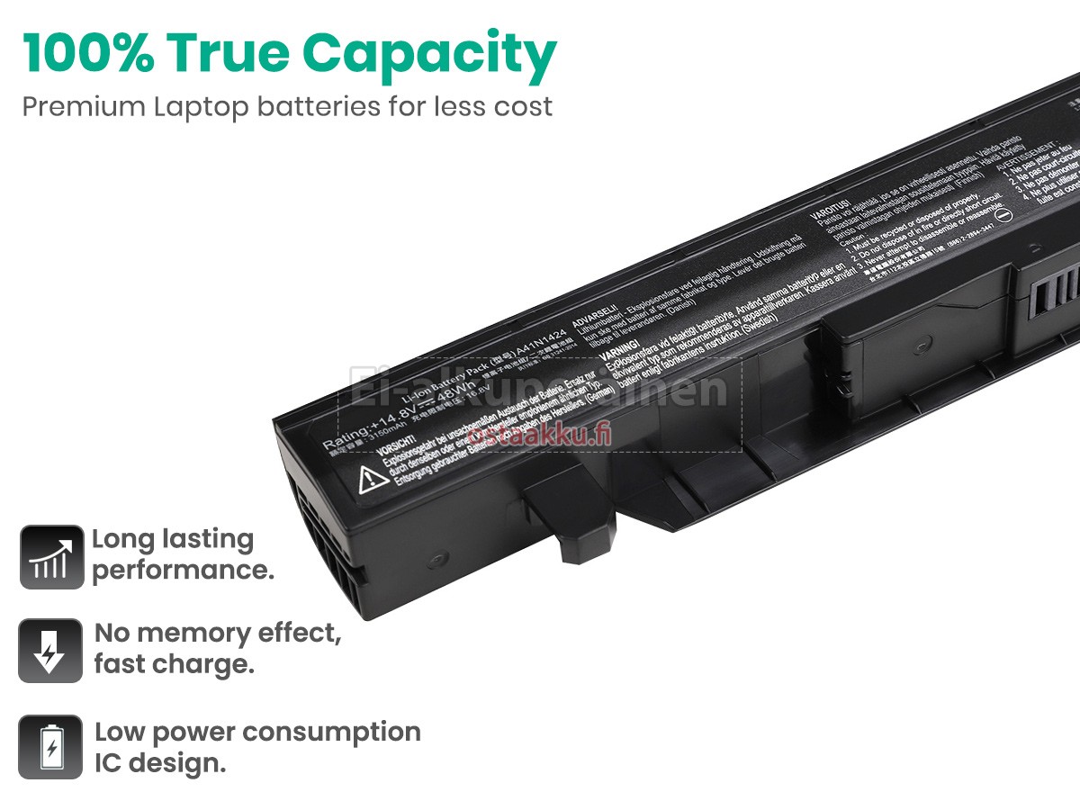 Vaihdettava akku Asus GL552J on uusi. Ehdottomasti ei myydä käytettyjä akku tai uudistettu. Akut ovat valmistettu parhaista solujen ja komponentteja.