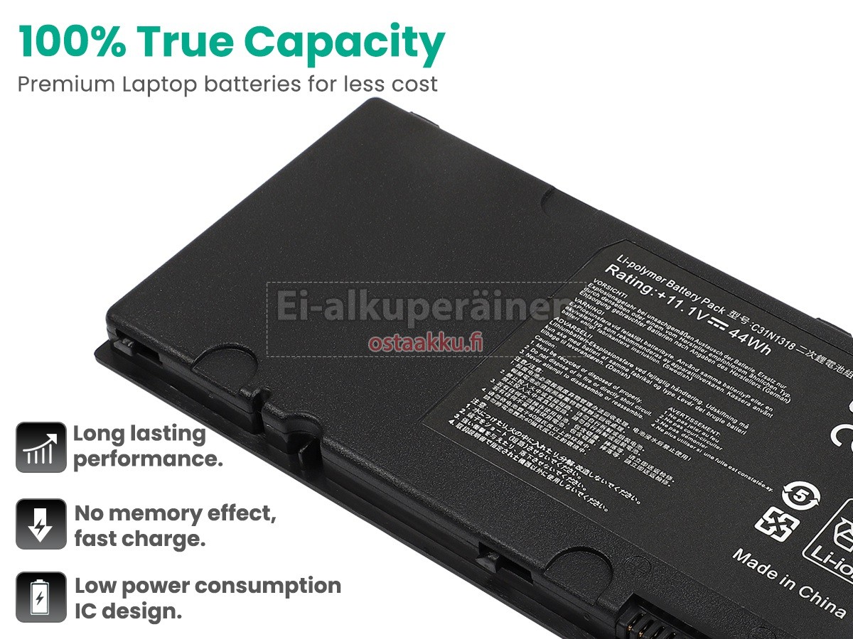 Ei muita eroja, paitsi ilman akku tuotemerkkiä. Kaikki akkuja ovat saatavilla in ostaakku.fi valmiustilassa paristot alkuperäisiä valmistajia. Hyväksyy ytimet ja älykäs soluja, kuten alkuperäisiä valmistajia, joten suorituskyky ja yhteensopivuus Asus PU301LA akku on samanlainen kuin alkuperäisen akku ja paremmin. Tämä vähentää palkkion brändistä, varmistaa laadun. Monet asiakkaat ajattelevat, että alkuperäinen akku on parempi suorituskyky. Itse asiassa, kannettavani akkuja tuotemerkkejä ovat myös monet kolmannen osapuolen komponentteja (kuten Samsung, LG, jne). Kuten Kannettavani keskusyksikkö, brändin oma tietokoneyritys ei ole sitä kehittänyt.