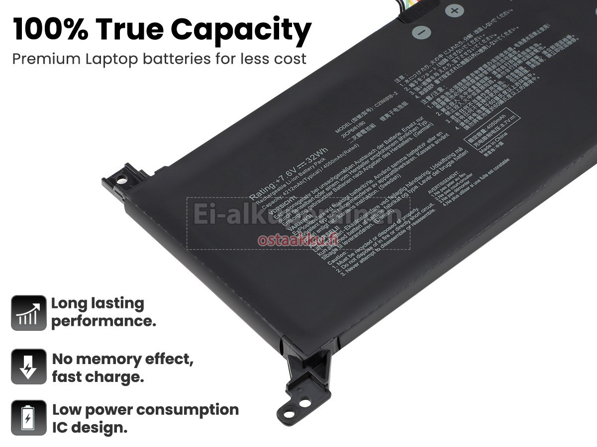Vaihdettava akku Asus R509UA on uusi. Ehdottomasti ei myydä käytettyjä akku tai uudistettu. Akut ovat valmistettu parhaista solujen ja komponentteja.